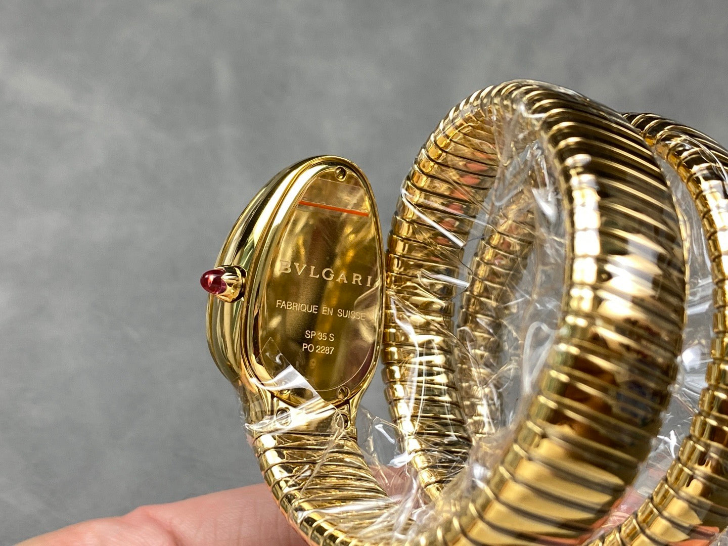 Bvlgari Serpenti Tubogas 35mm Diamond Gold Double Spiral Black Dial Watch