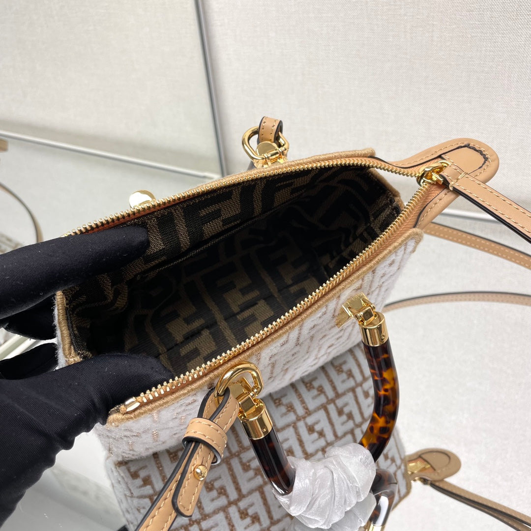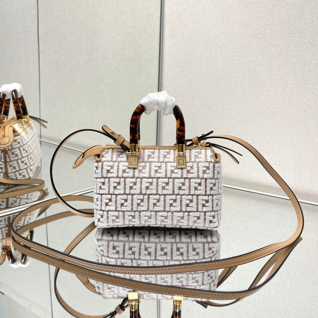 BY THE WAY MINI 18 IN WHITE WOOL AND CAMEL BROWN RAFFIA CALFSKIN TRIM