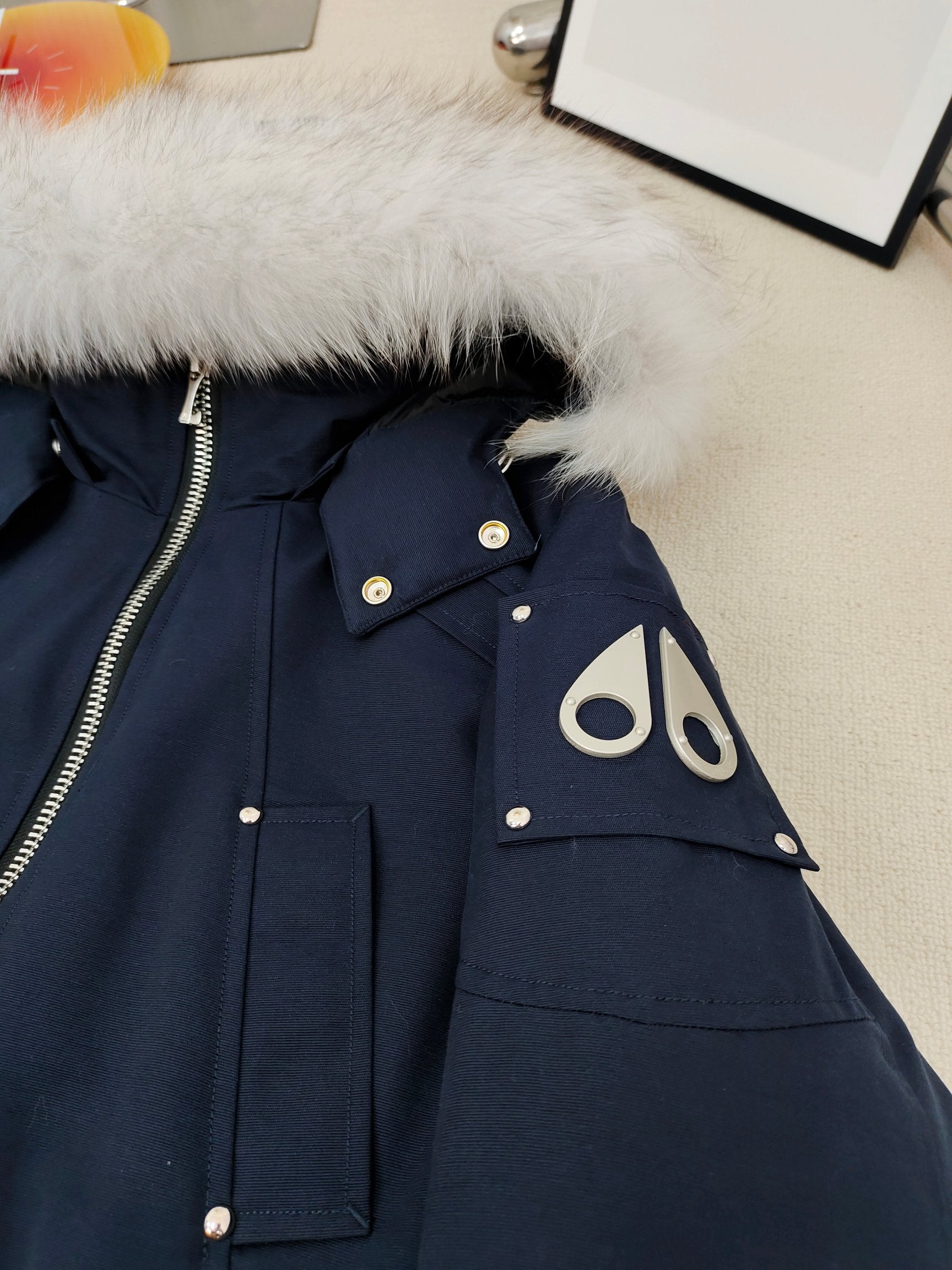 C. Goose Down Jacket Navy Blue Polyester 0017