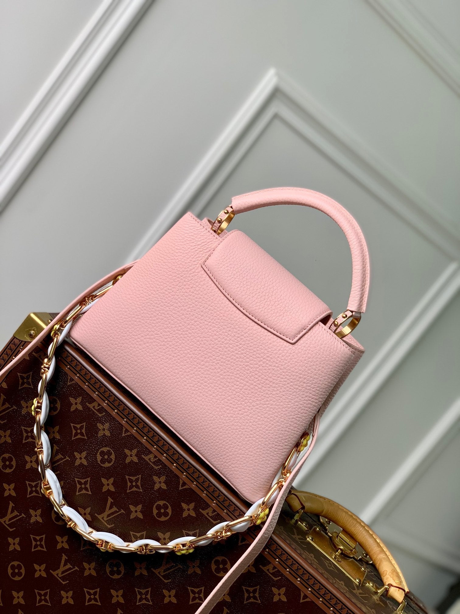 CAPUCINES BB 27 PINK TAURILLON TURQUOISE MOP GOLD HARDWARE
