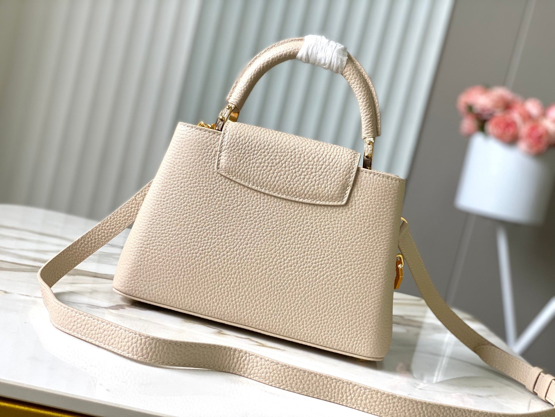 CAPUCINES BB 27CM BEIGE TAURILLON LEATHER