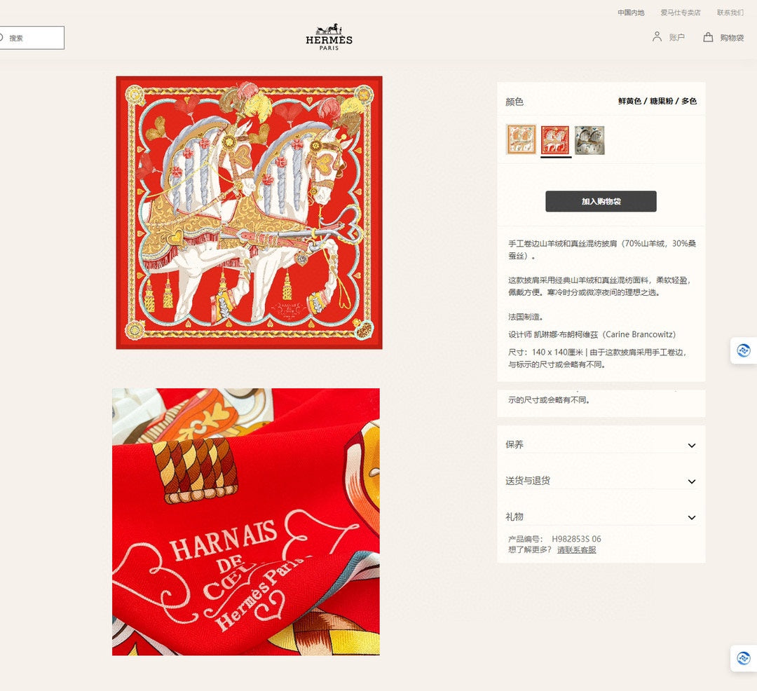 Carré Harnais De Cœur Scarf 140 CM In Red Colorful Cashmere And Silk 335858