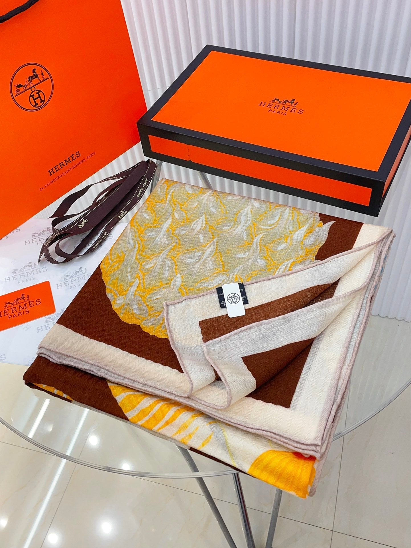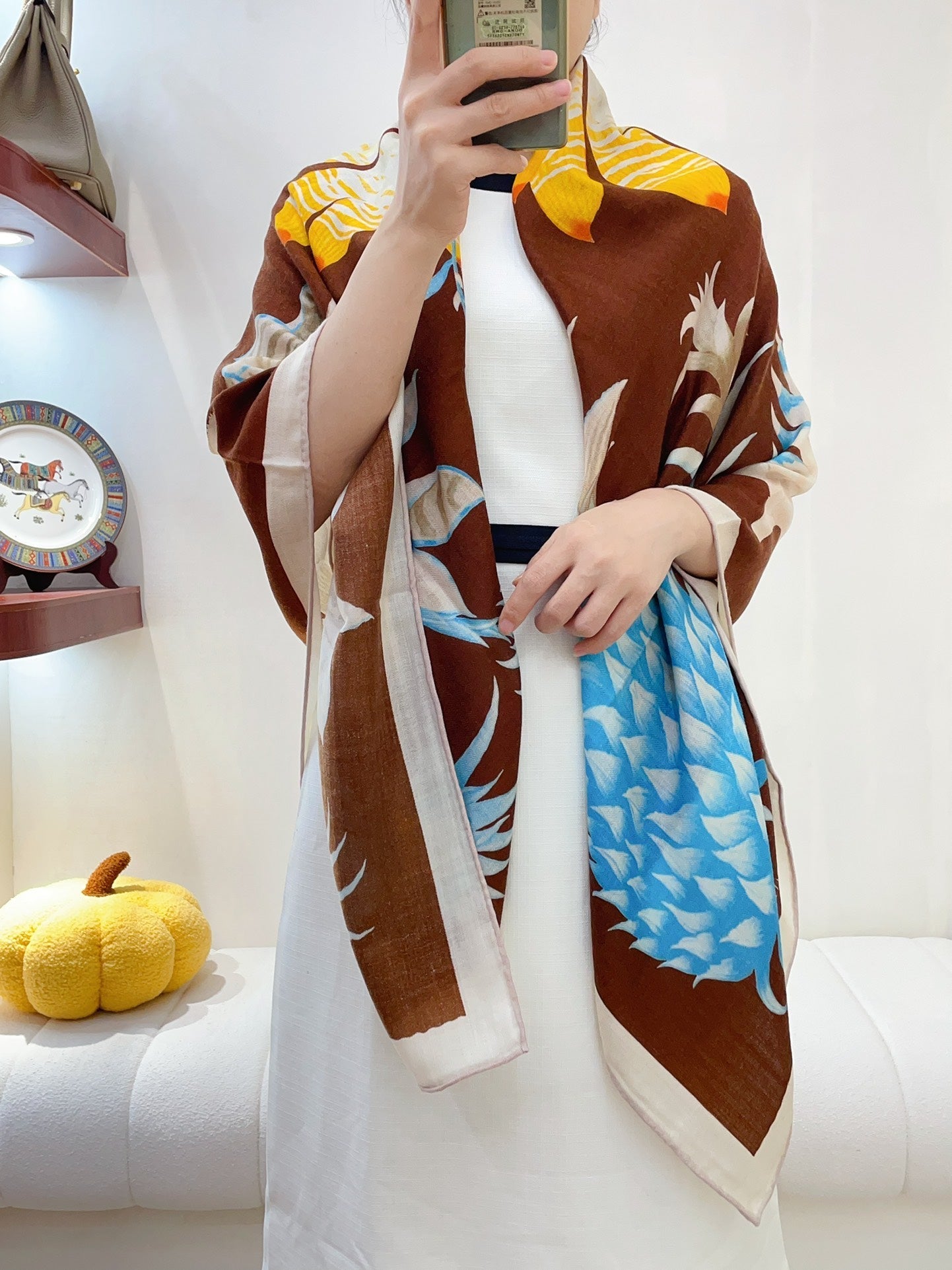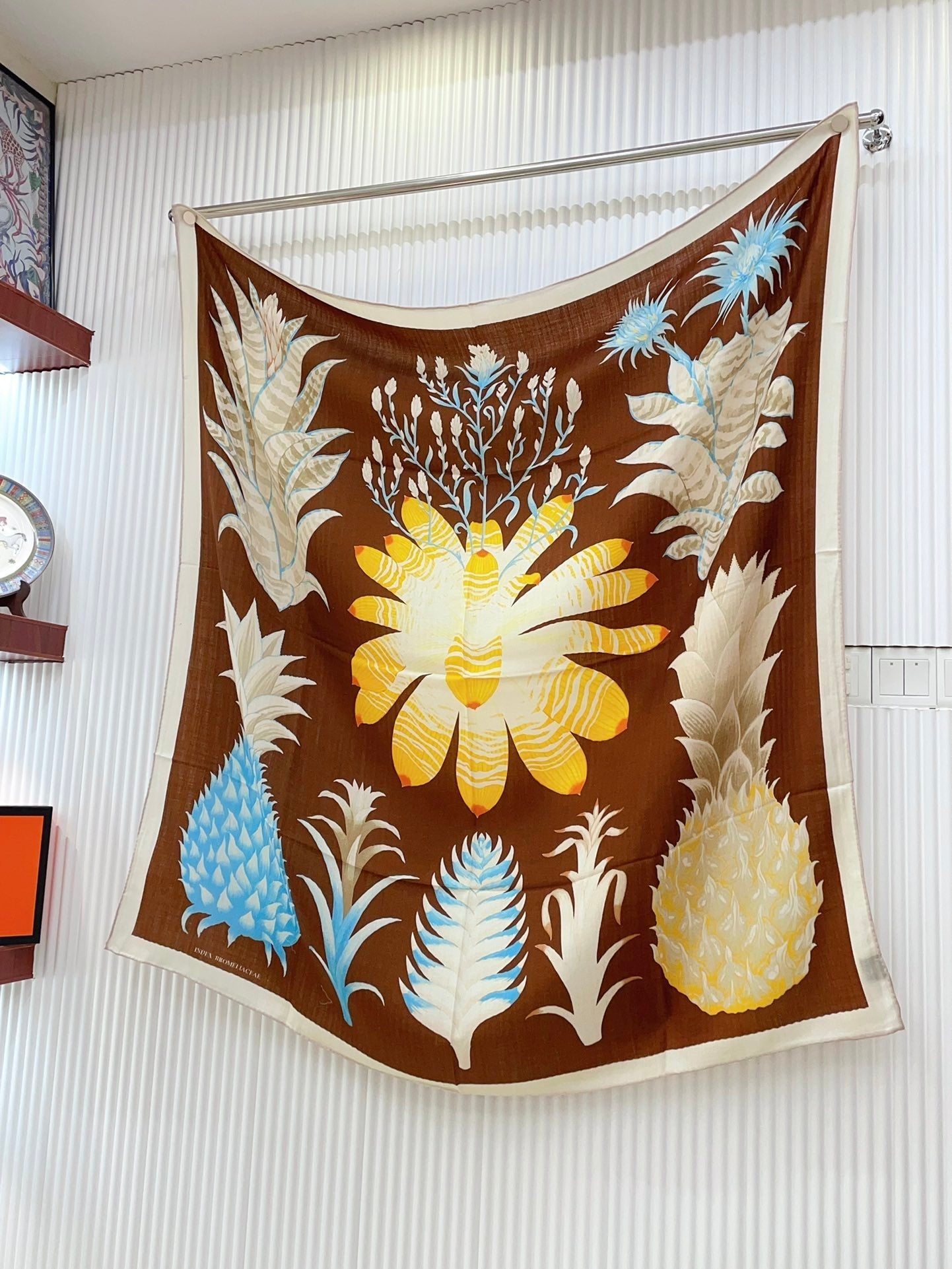 Carré Index Bromeliaceae 135 CM In Brown Colorful Silk Cashmere 228991