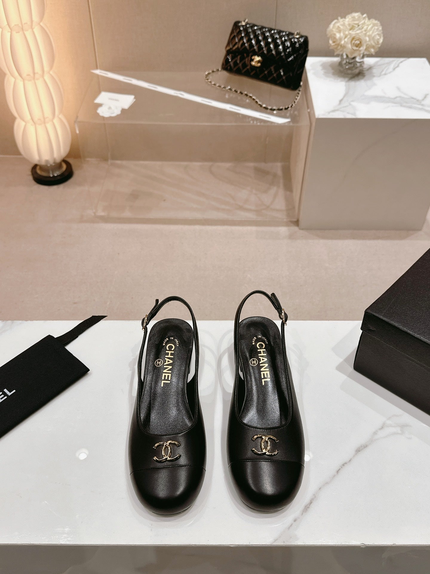 CC 2024 SLINGBACKS 40MM BLACK LAMBSKIN