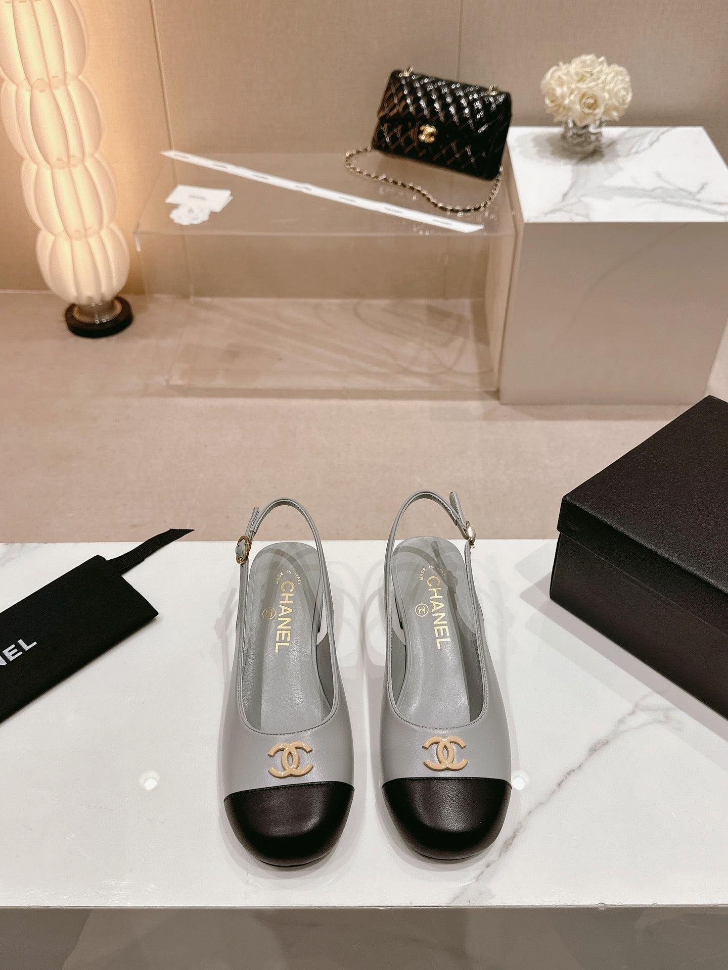 CC 2024 SLINGBACKS 40MM GREY BLACK LAMBSKIN