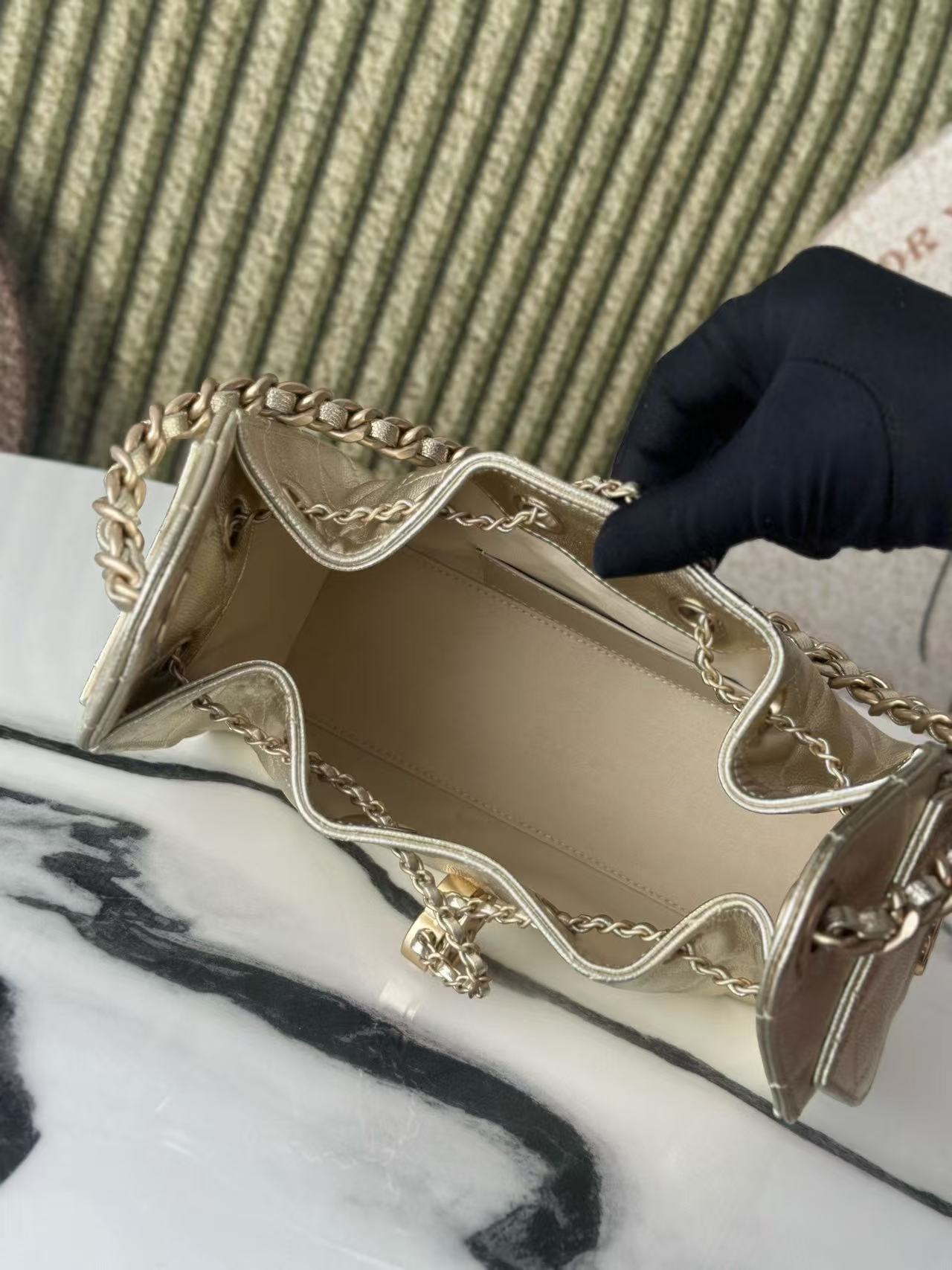 CC 2025 Hobo Bag Gold 22cm Metallic Grained Calfskin