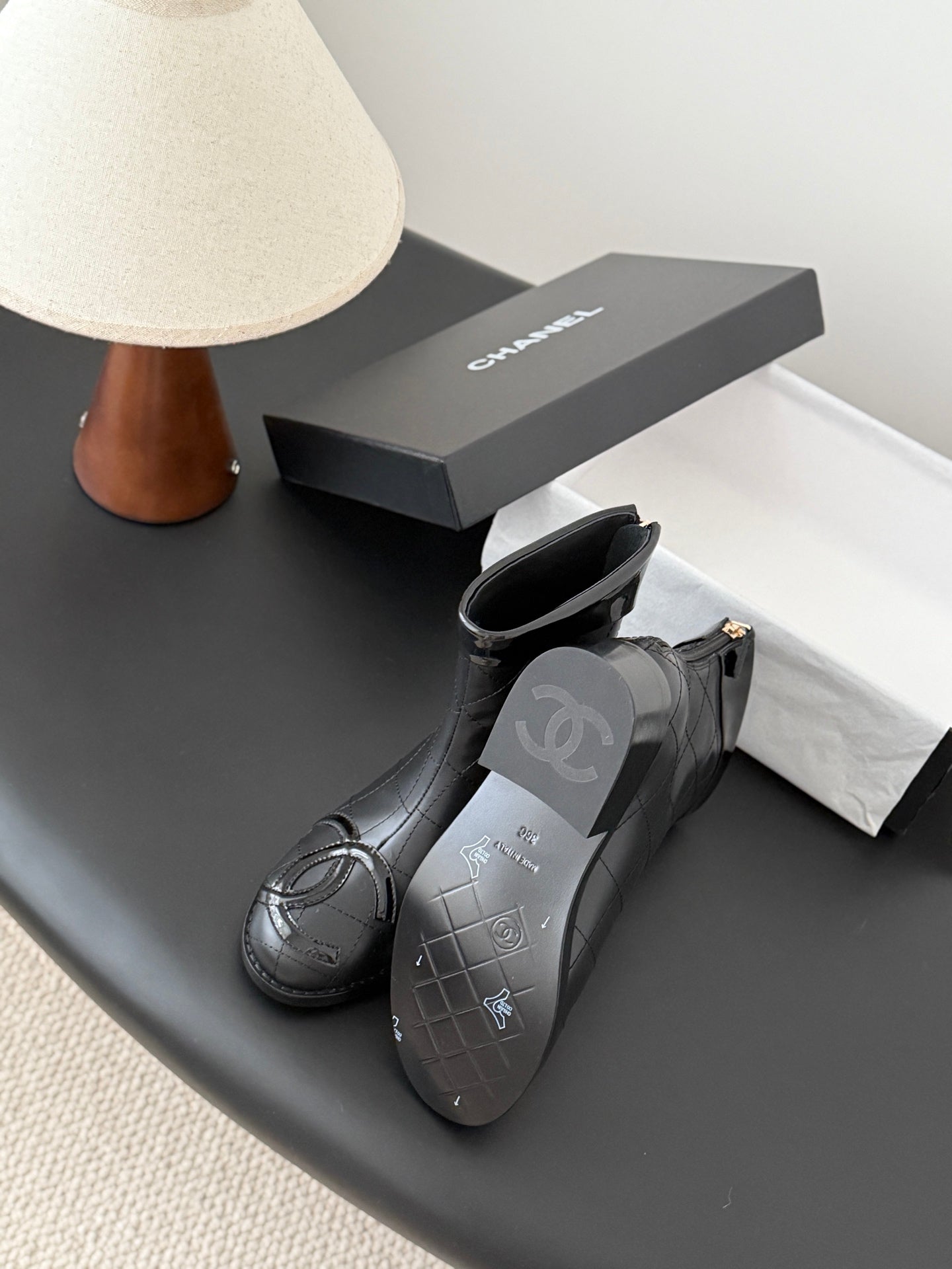 CC 2025 Vintage Cambon Mid-Calf Short Boots Black Cowhide 550635