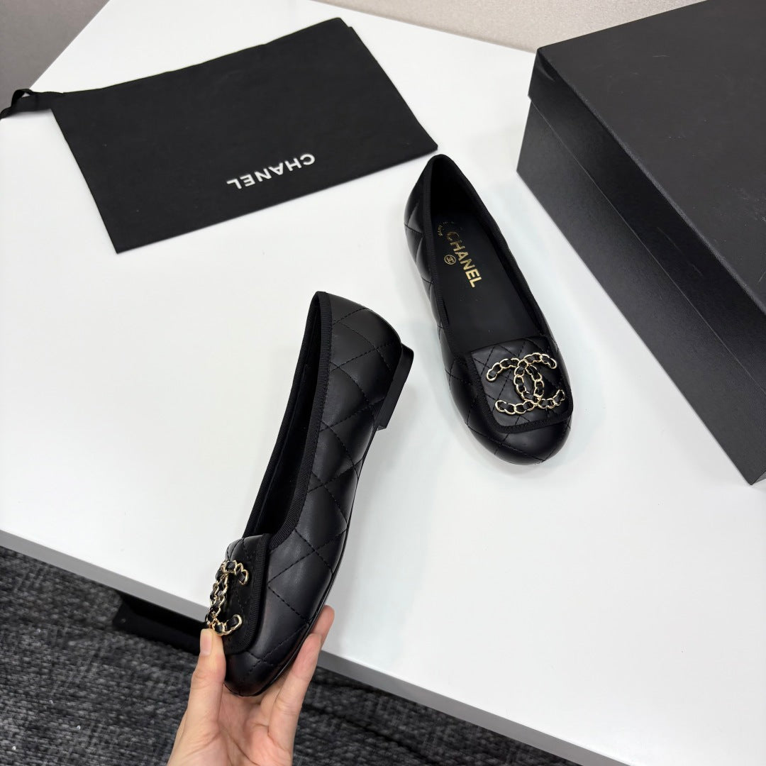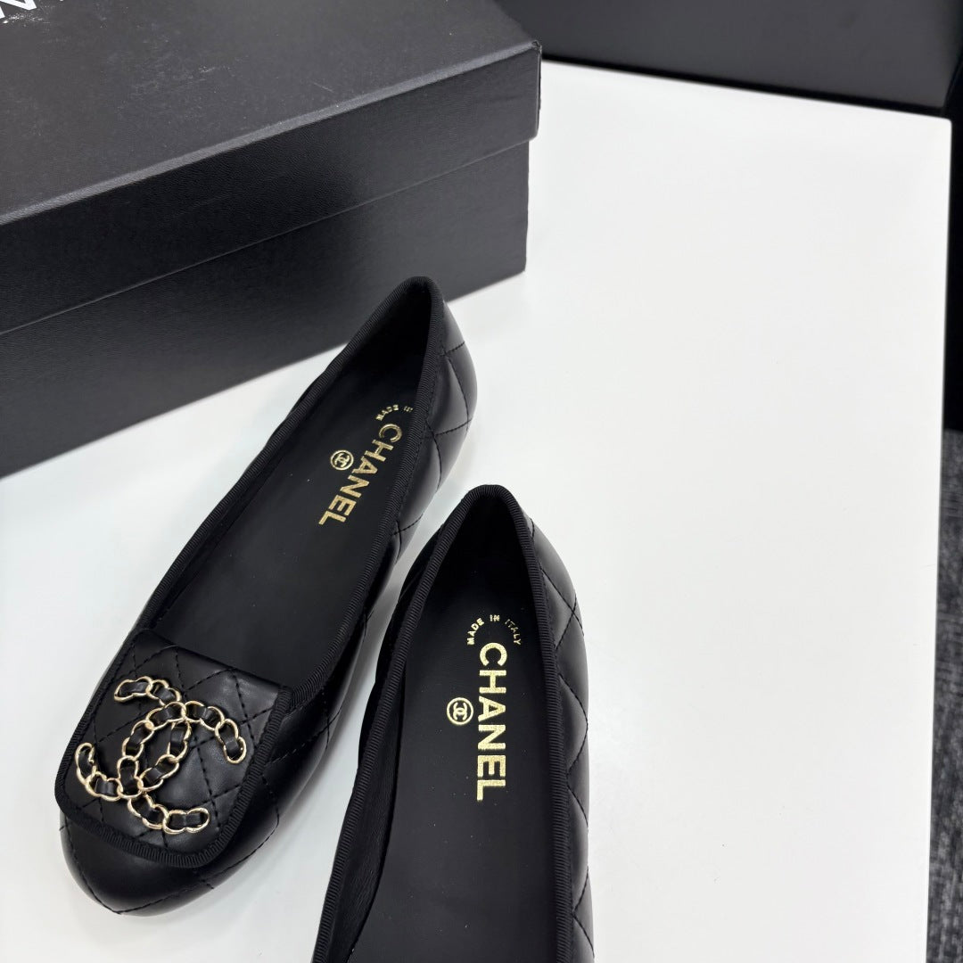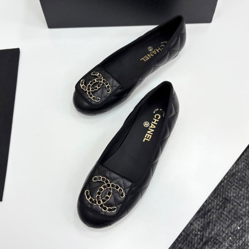 CC 25 Ballet Flat Large Logo Black Quilted Calfskin