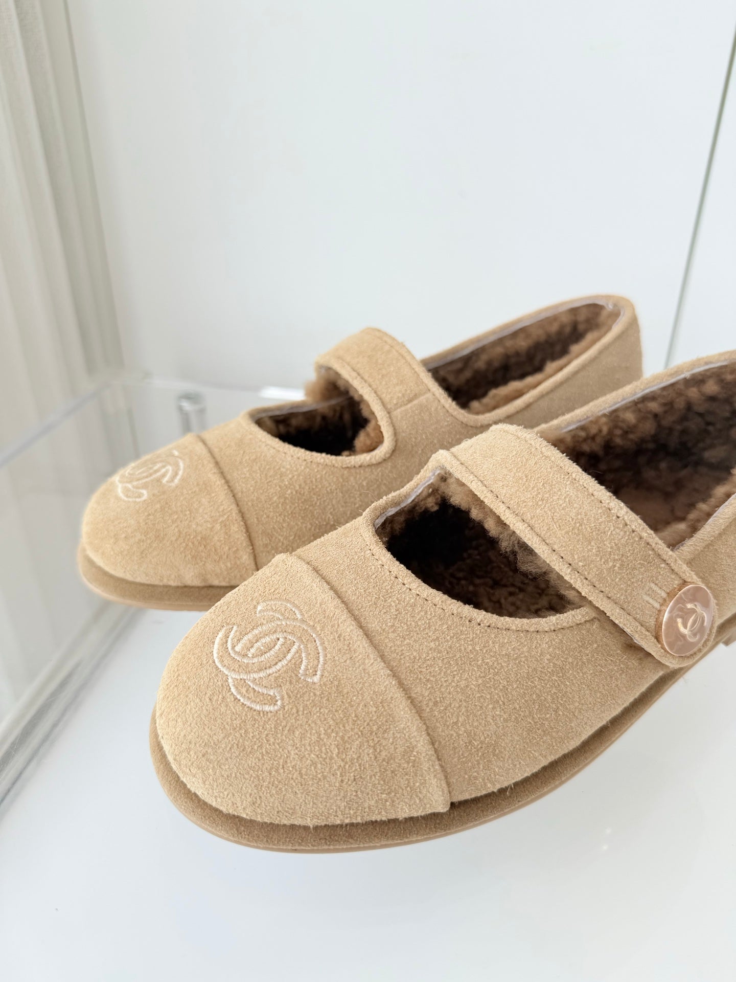 - Material: Suede, wool lining