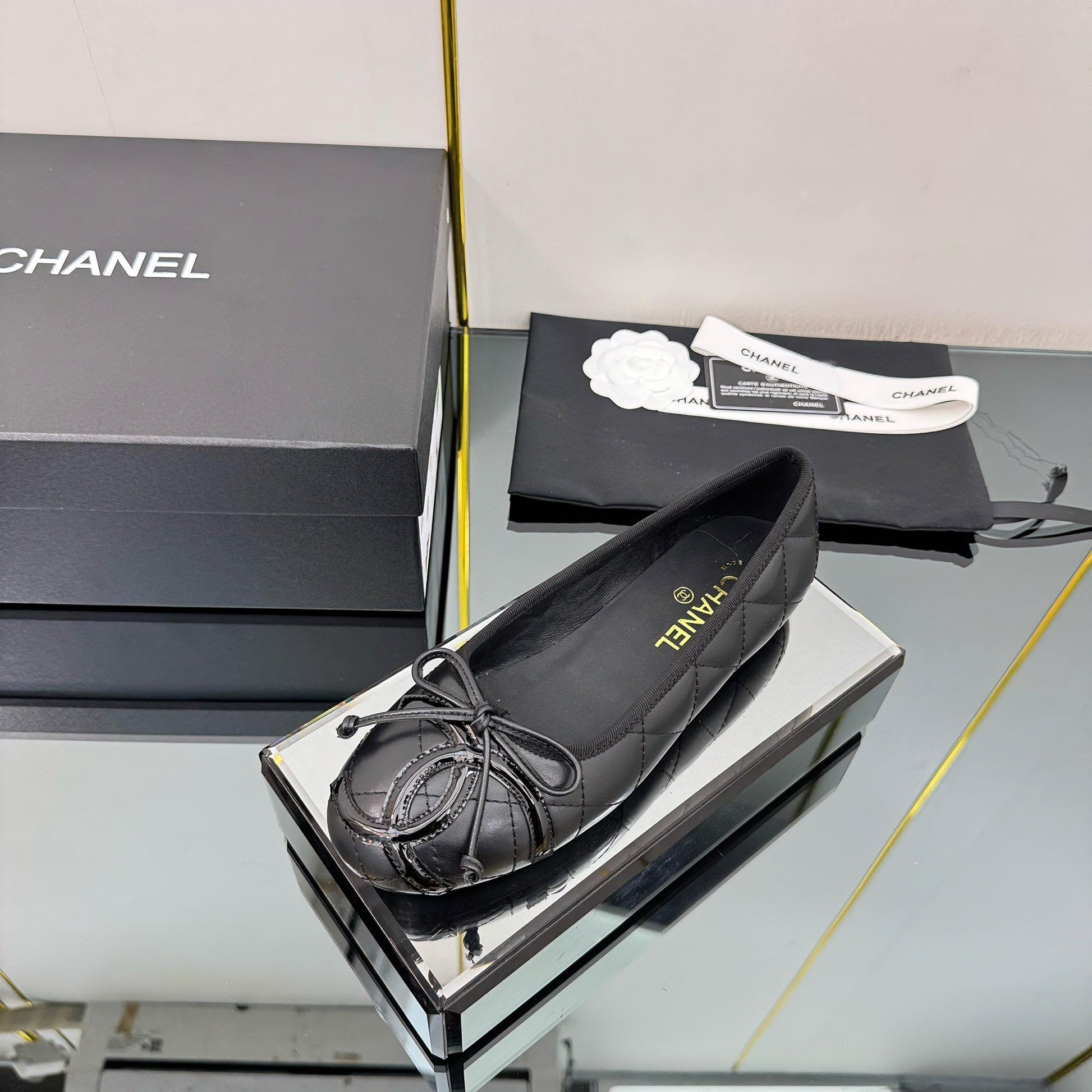 CC 25 Cambon Ballet Flat Black Quilted Calfskin