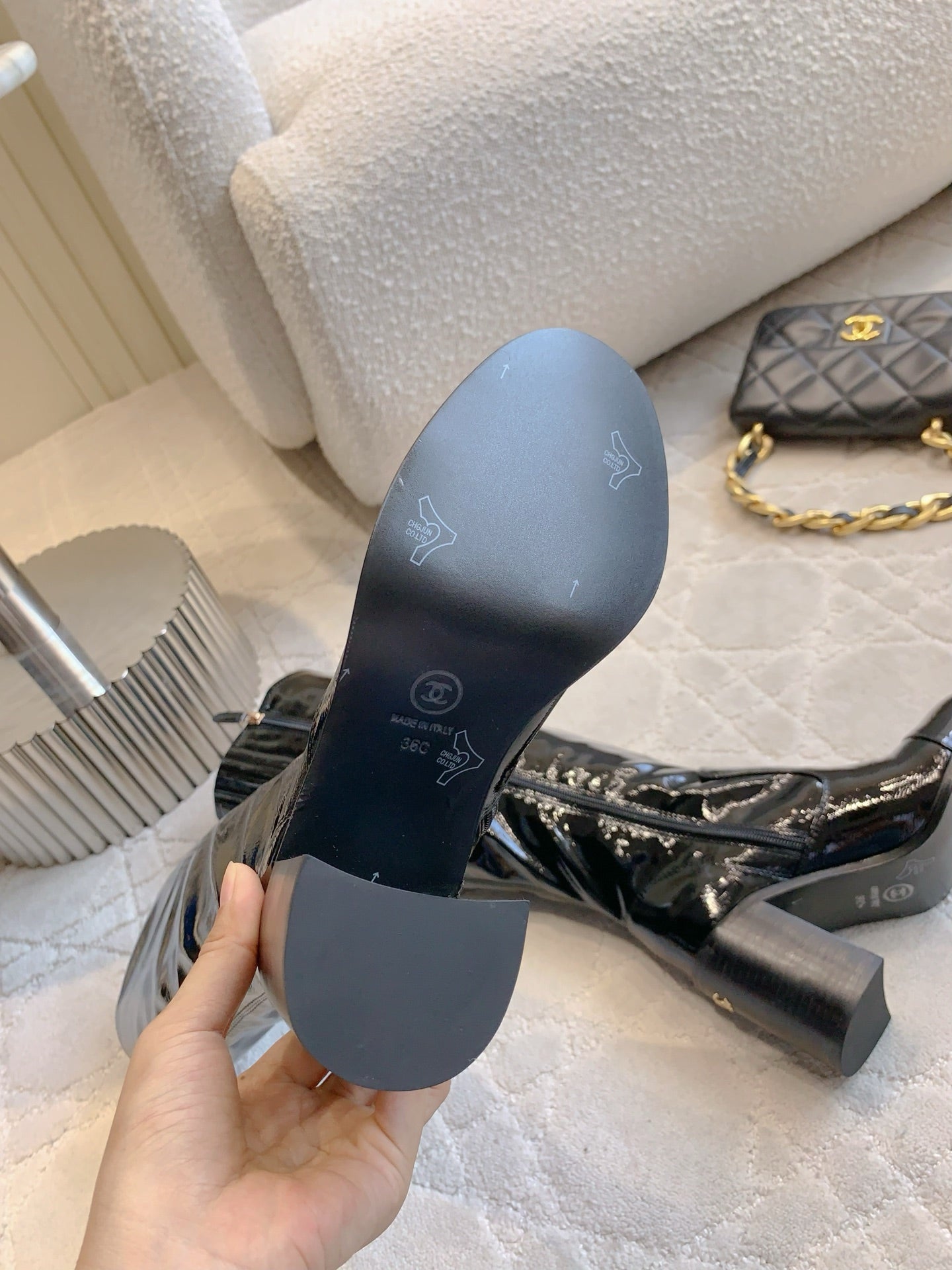 CC 25 Heeled Long Boot Black Patent Leather 516683
