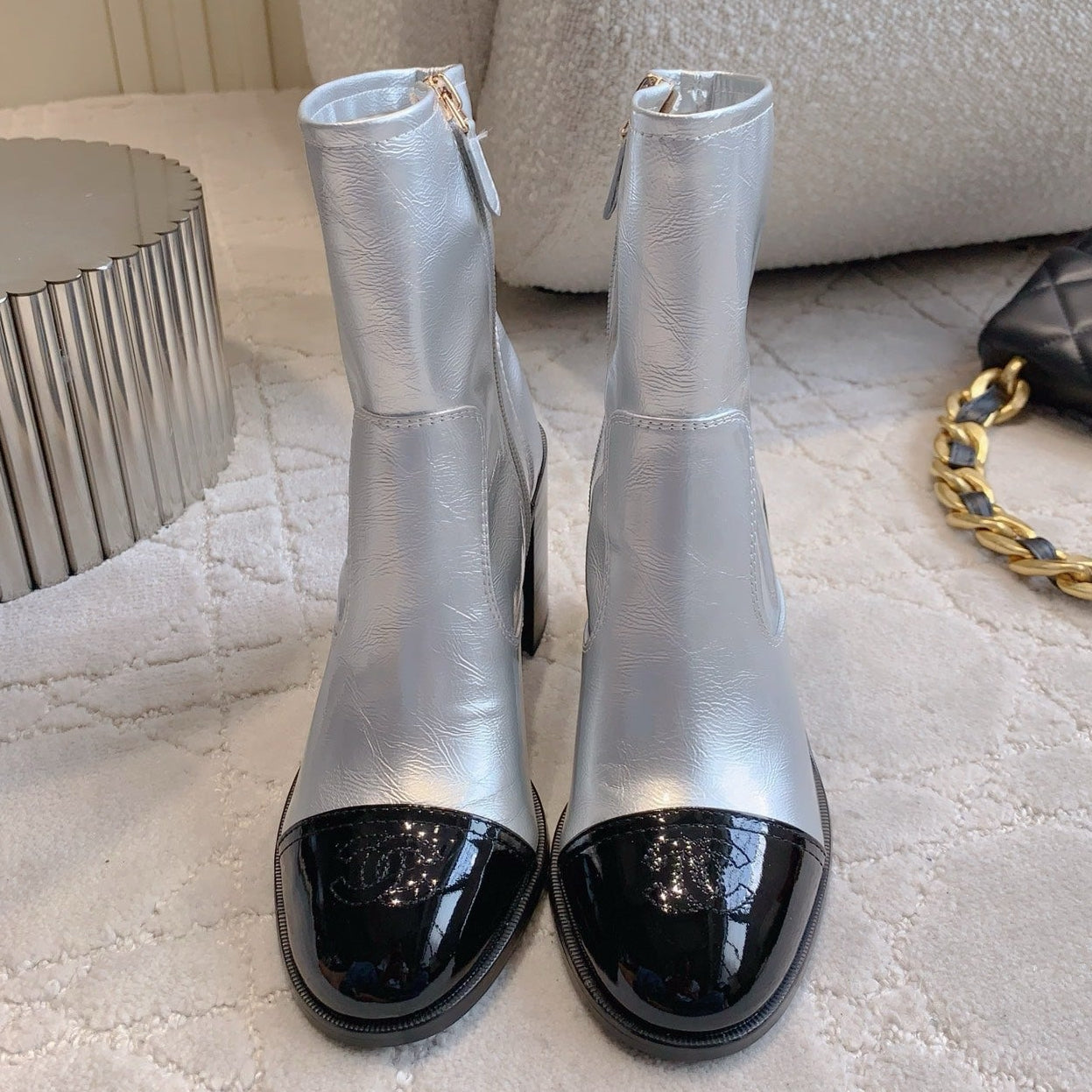 CC 25 Heeled Short Boot Silver mix Black Patent Leather 516676