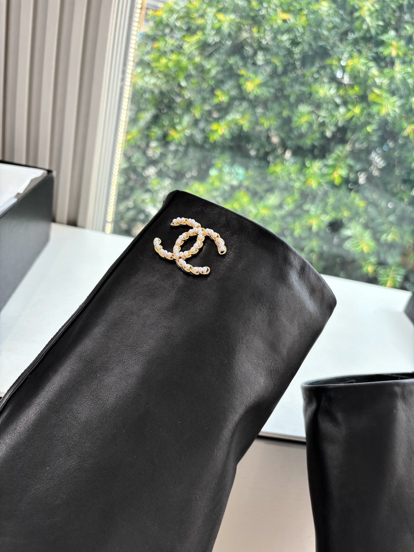 CC 25 High Boot Black Calfskin Grosgrain 430335