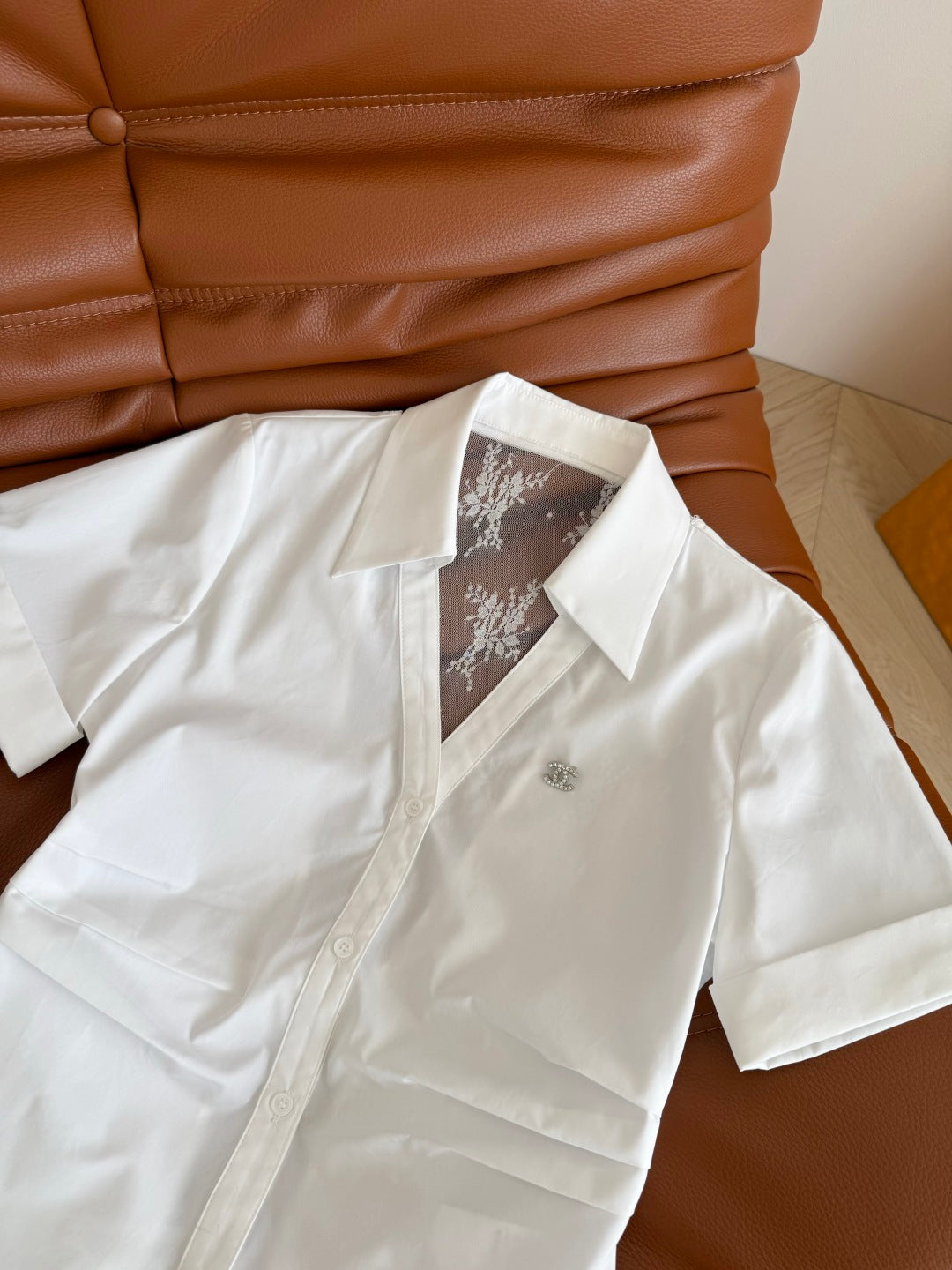 CC 25 Lace Backless Shirt White Cotton