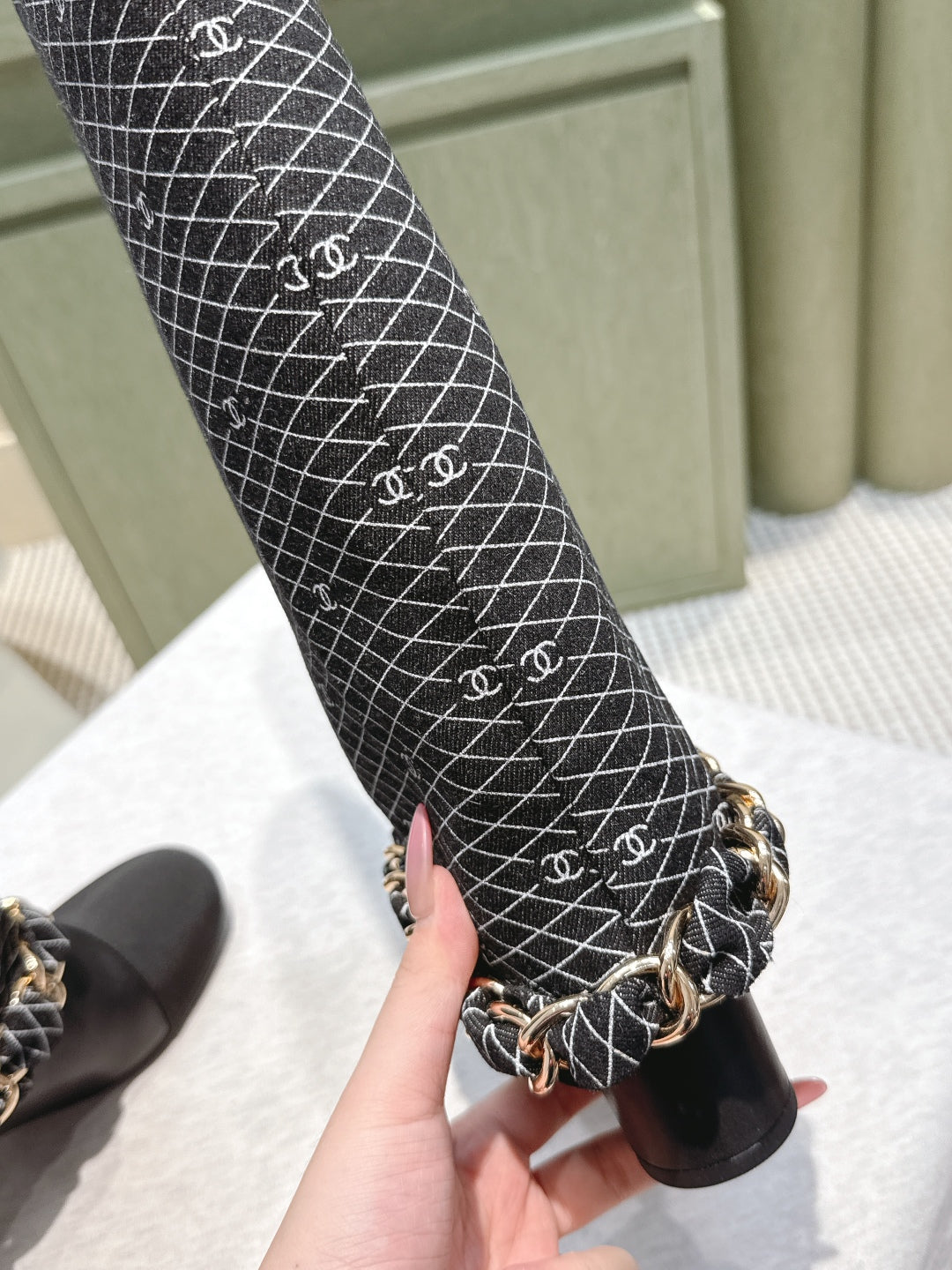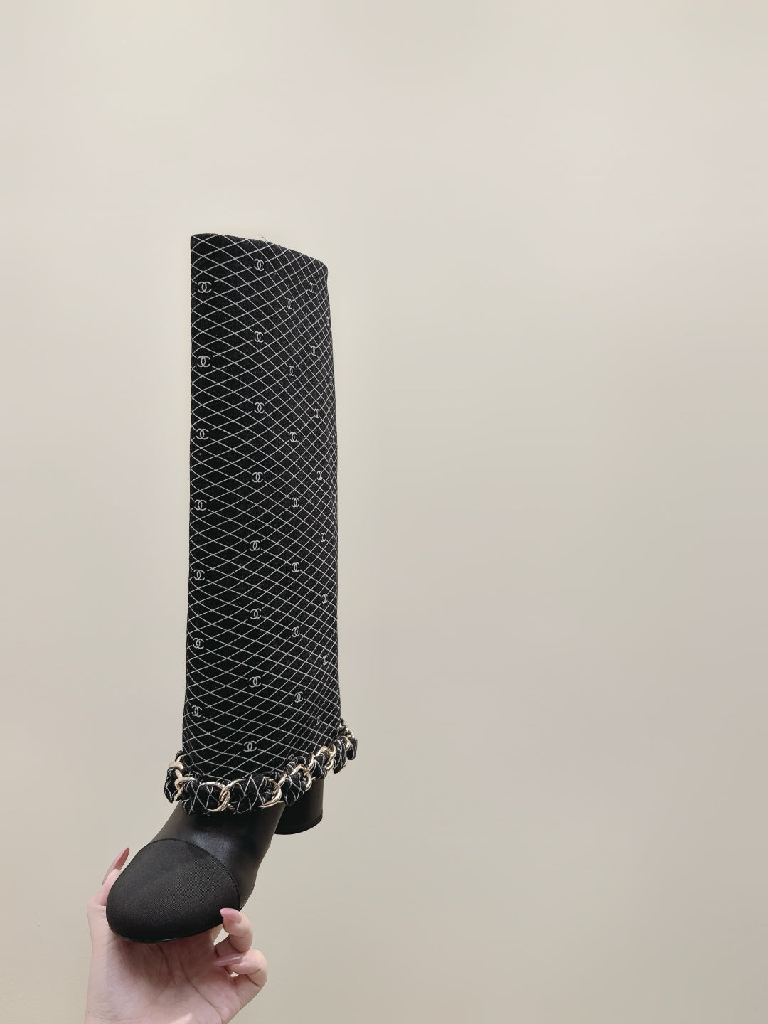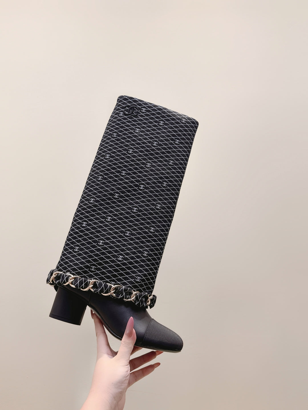 CC 25 Long Boot Black Denim Fabric Calfskin 515272