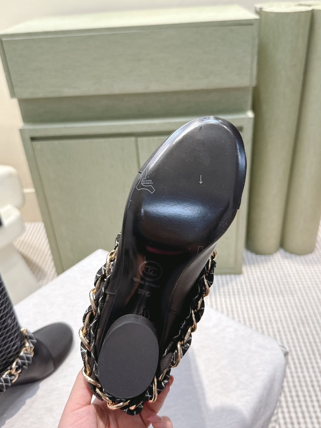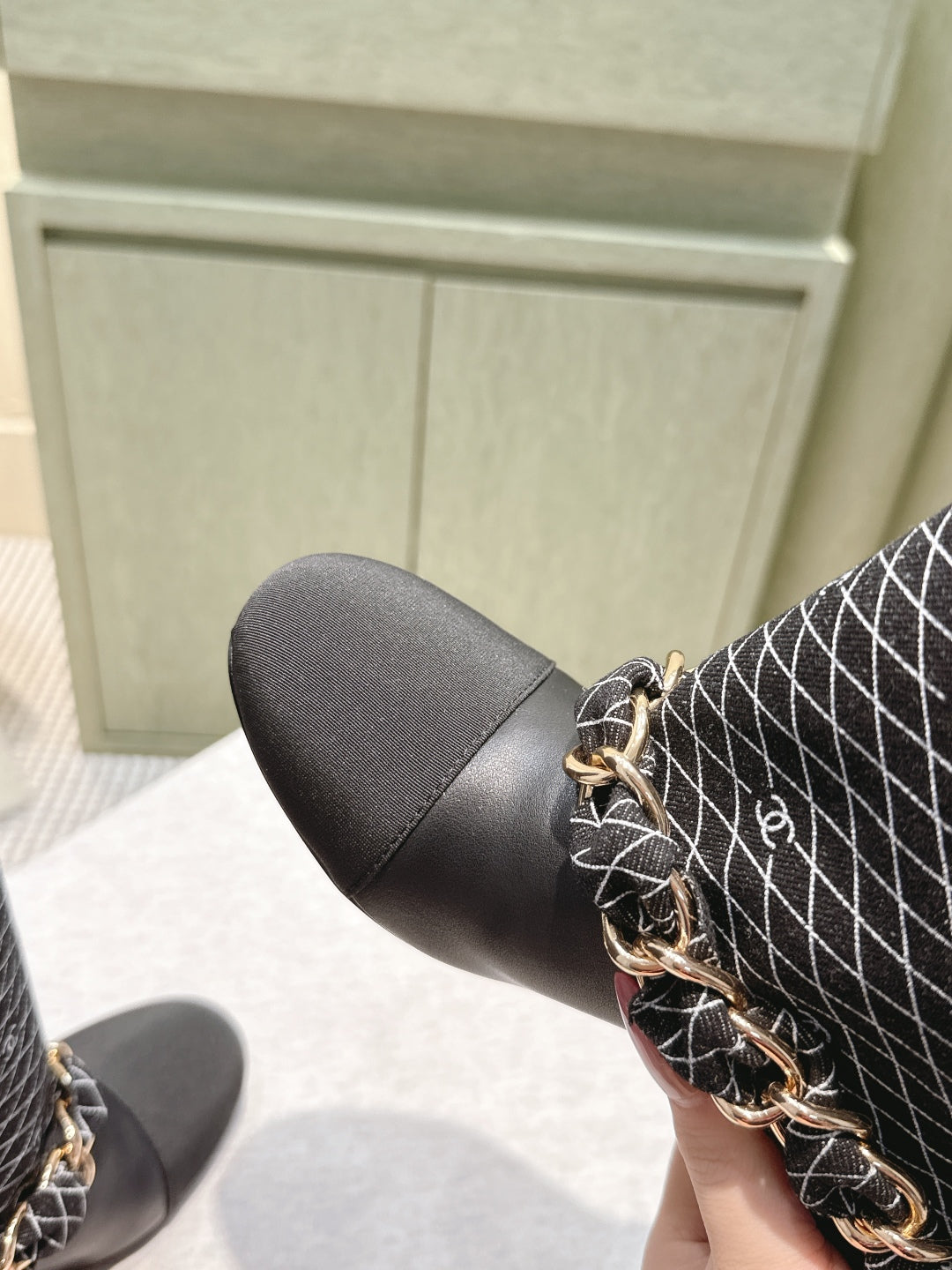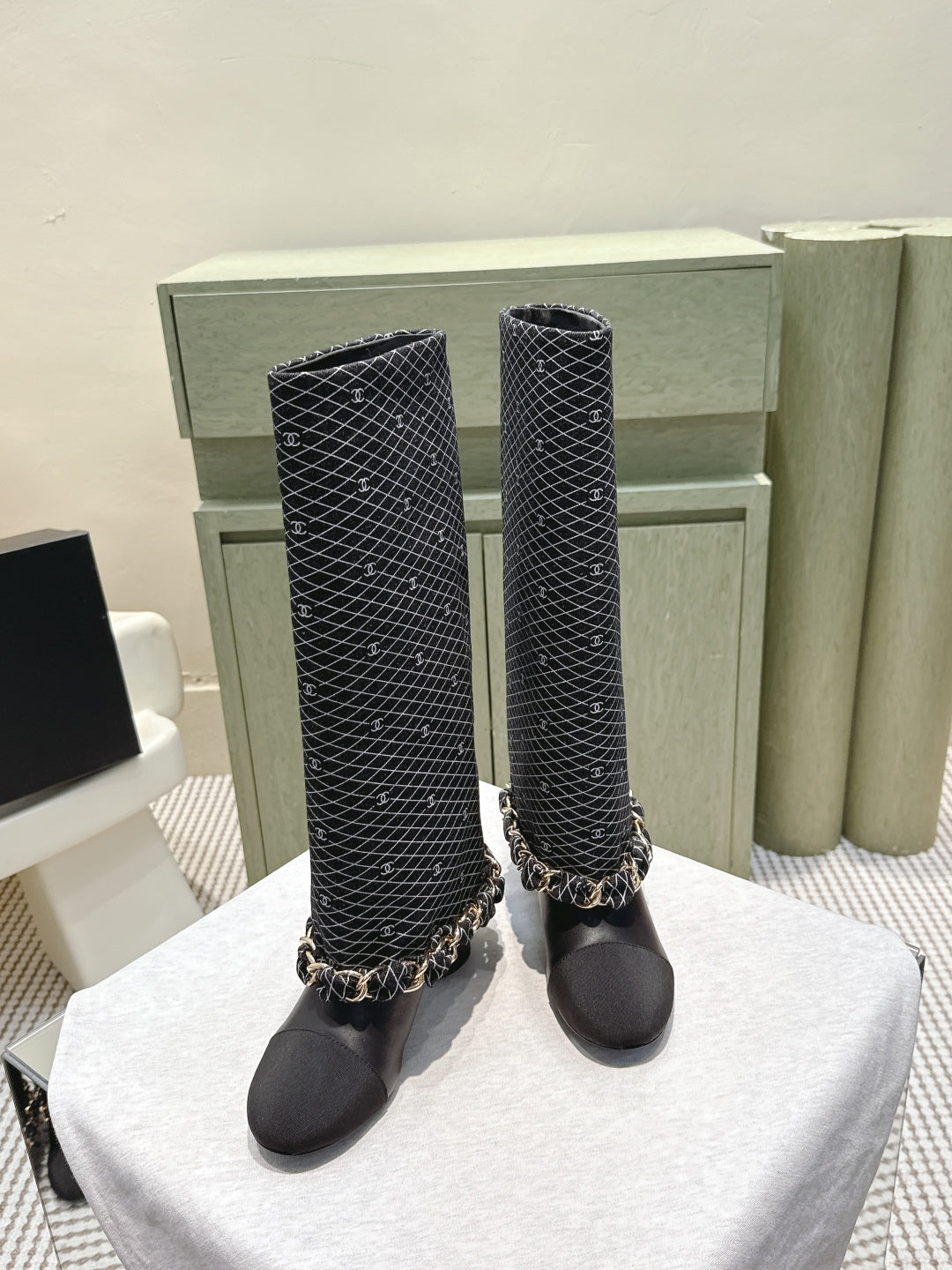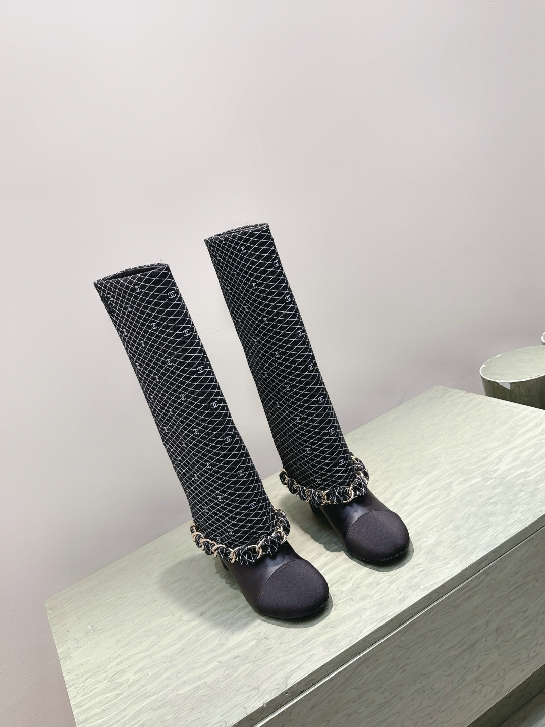 CC 25 Long Boot Black Denim Fabric Calfskin 515272