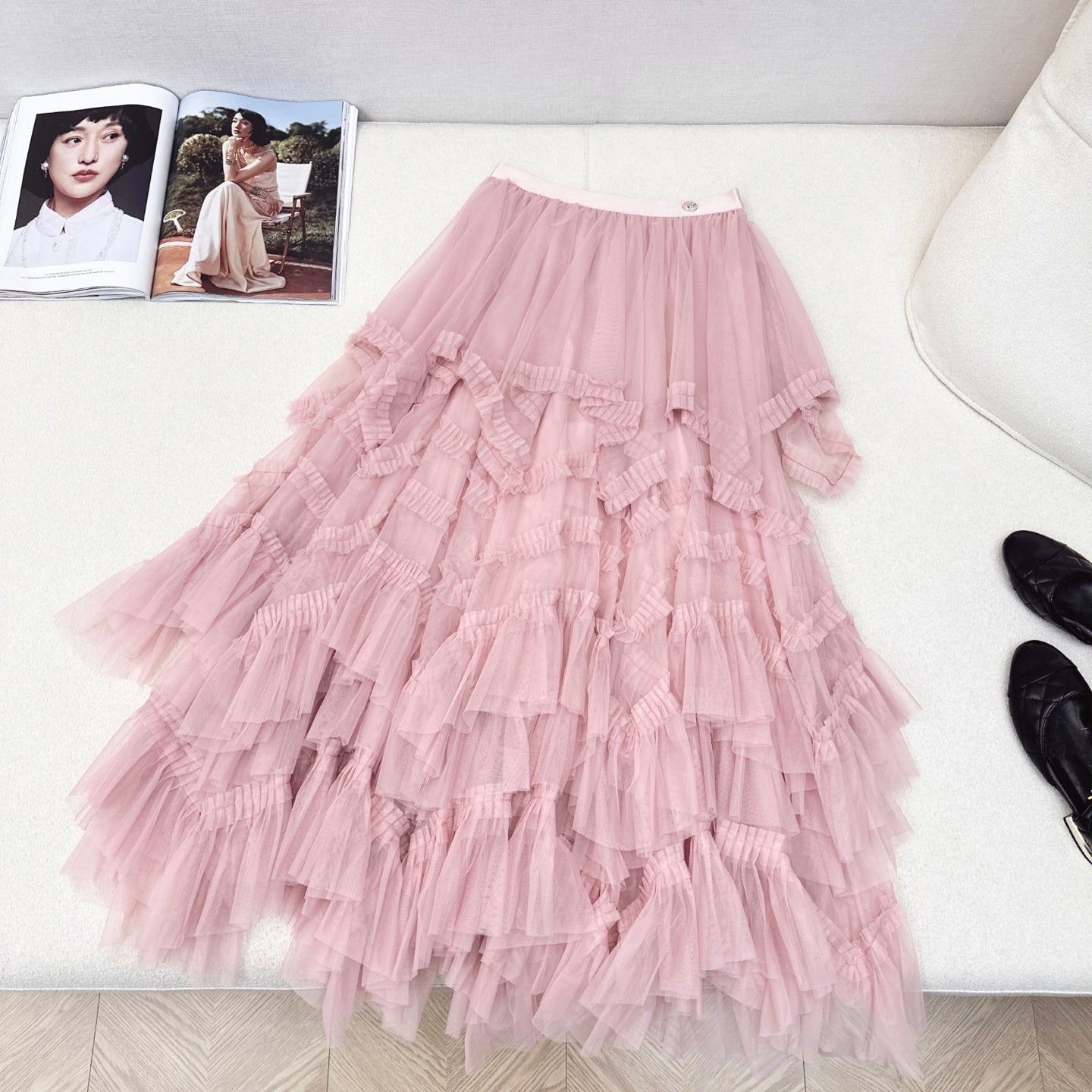 CC 25 Mesh Long Skirt Pink Polyester Fiber