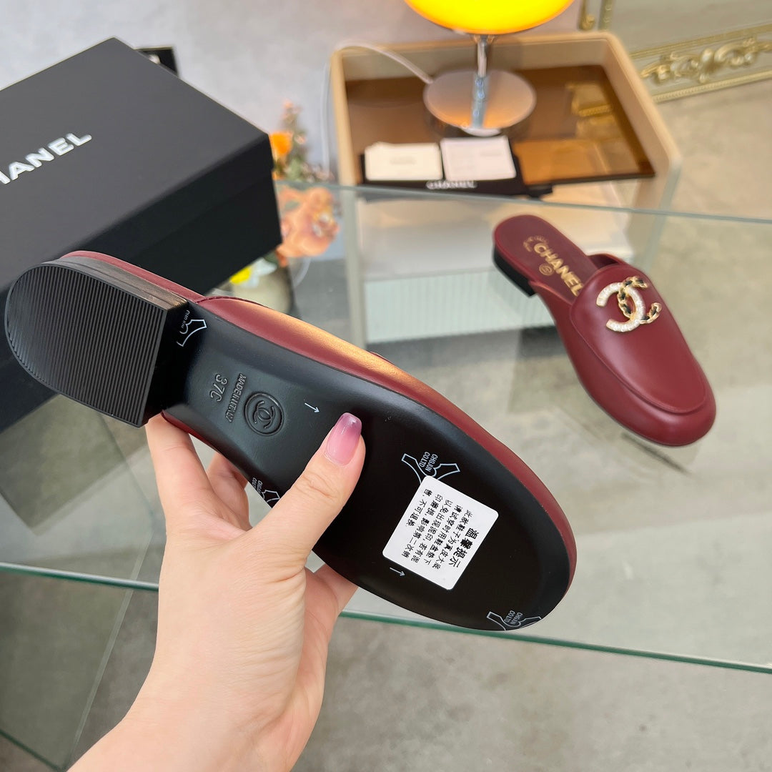 CC 25 Mule Burgundy Calfskin Large Double C Logo