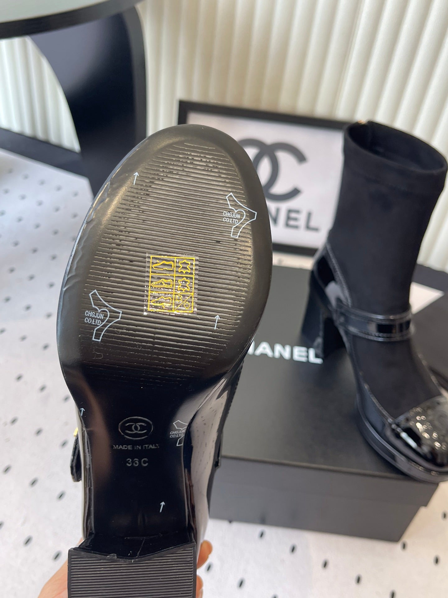 CC 25 Short Boot Black Suede Patent Leather 514102