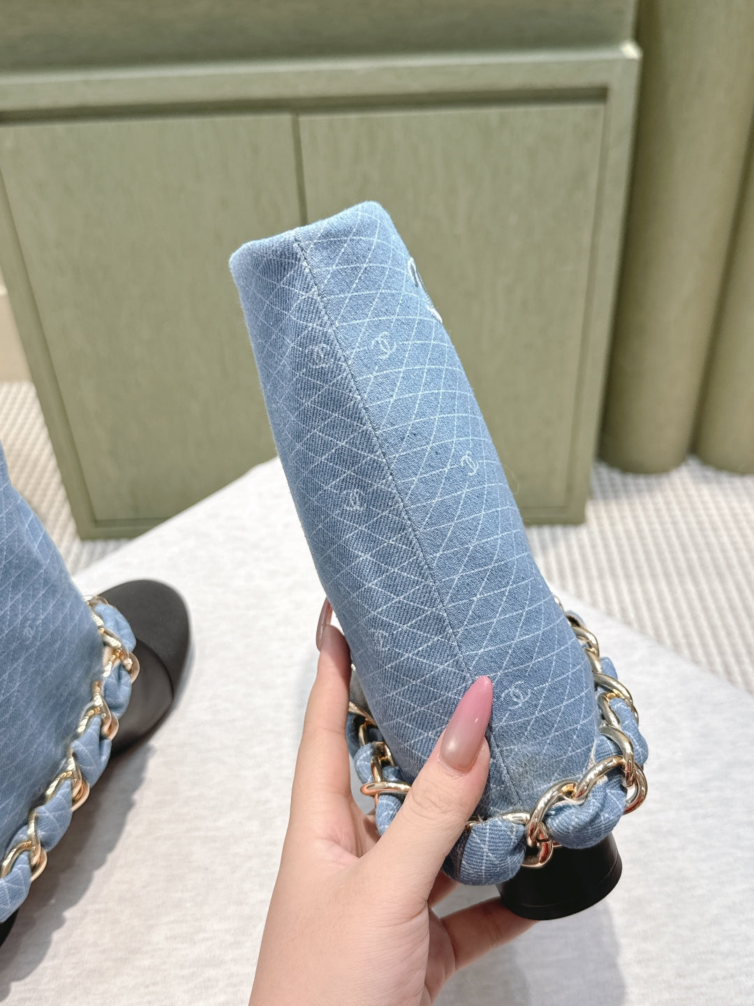CC 25 Short Boot Blue Black Denim Fabric Calfskin 515265
