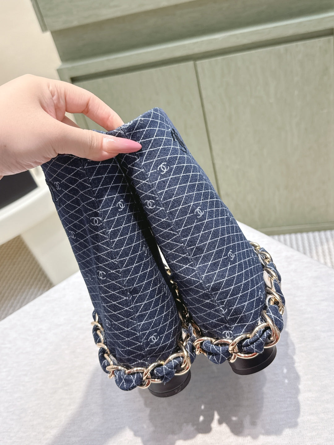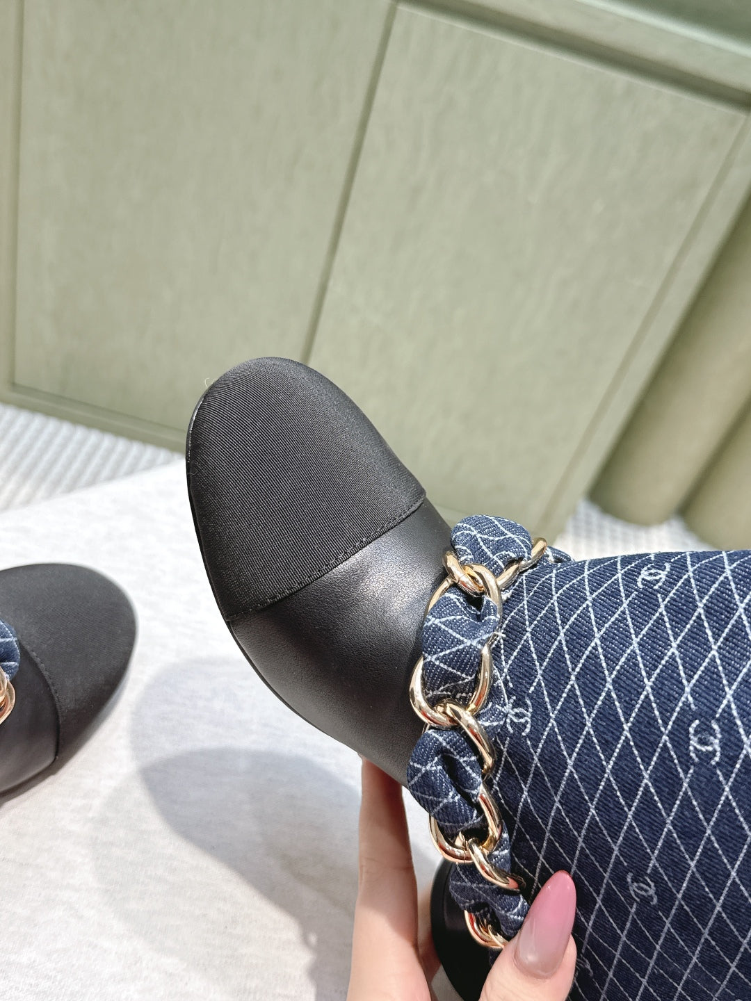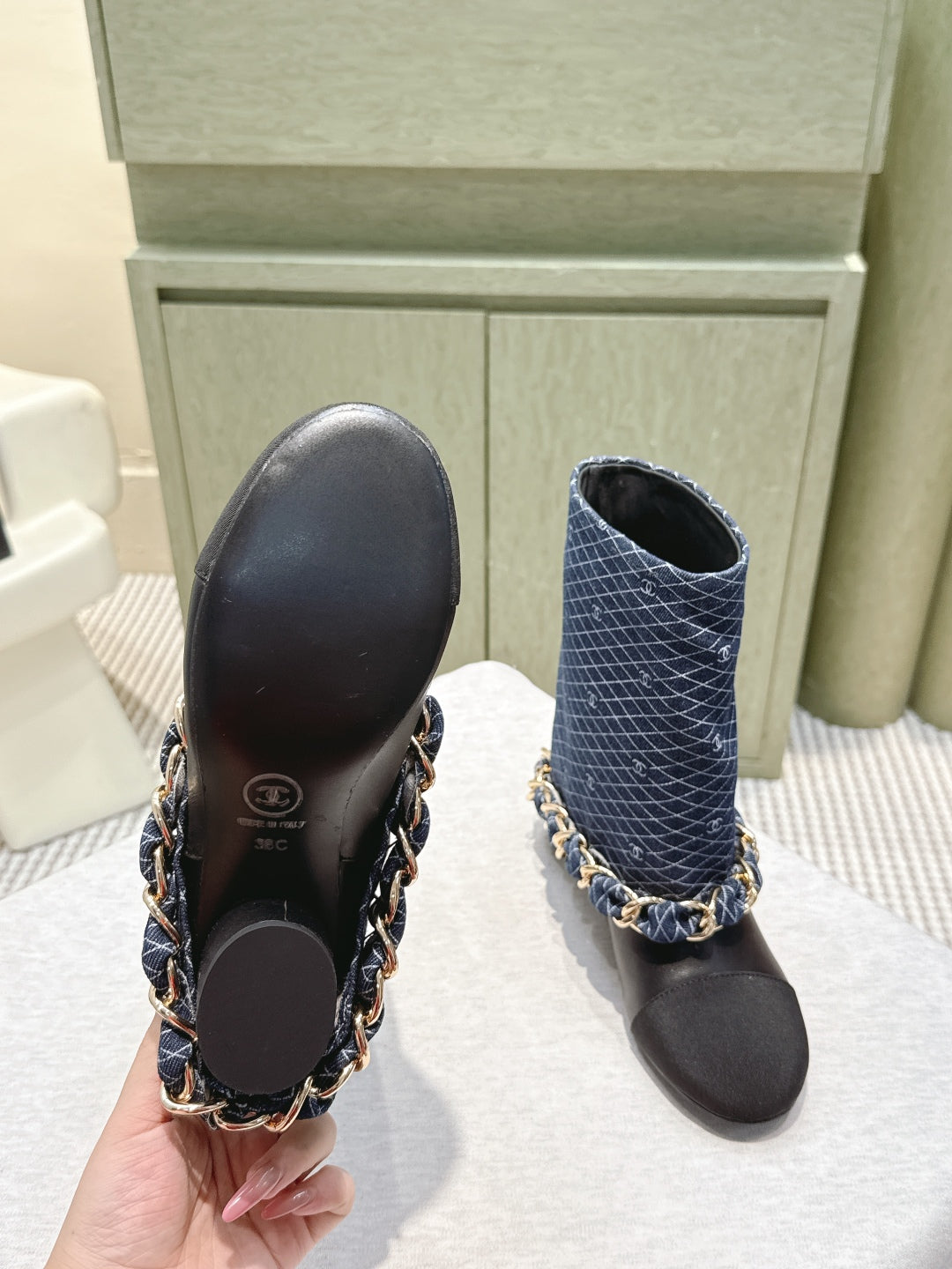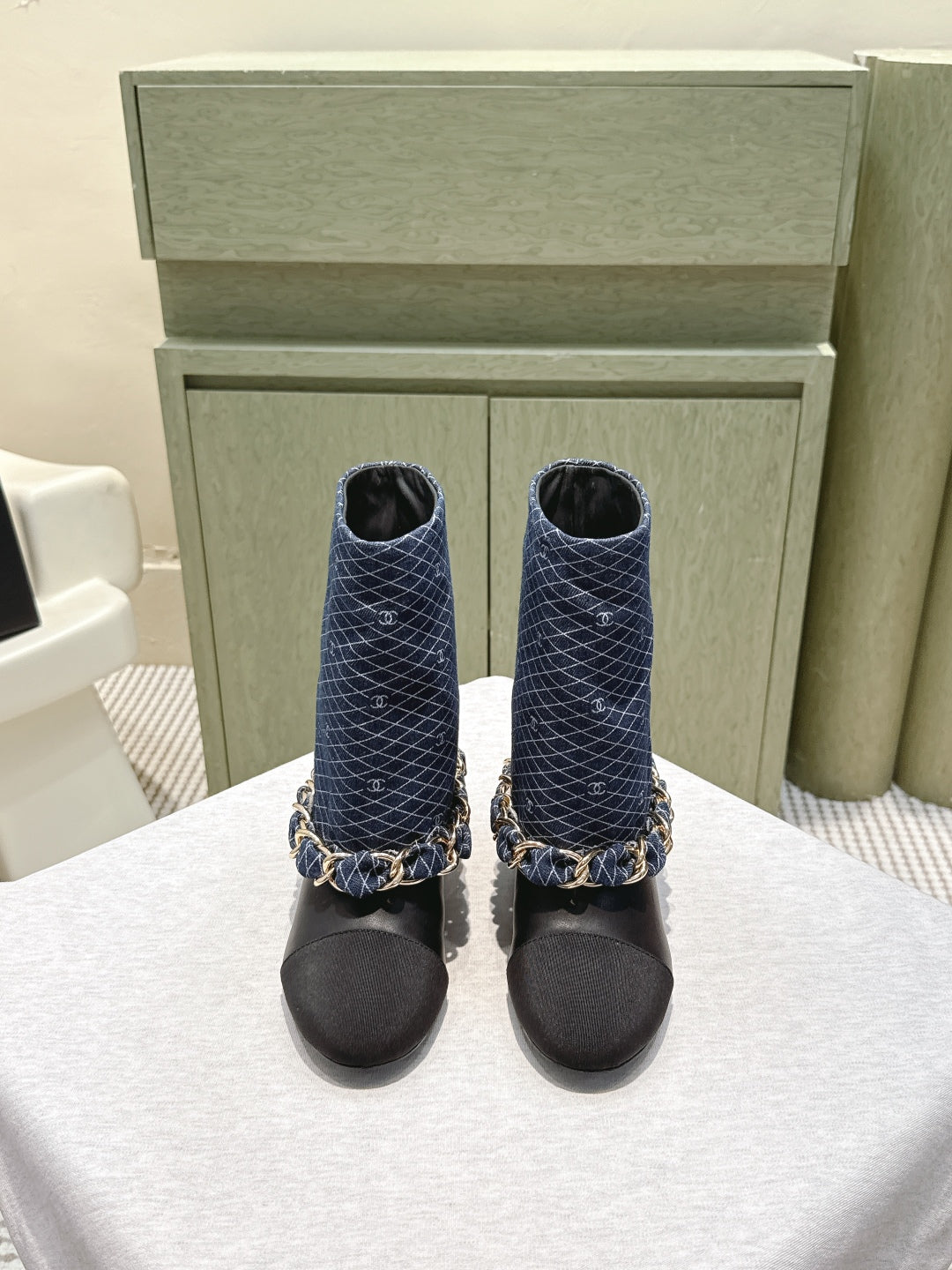 CC 25 Short Boot Navy Blue Black Denim Fabric Calfskin 515266