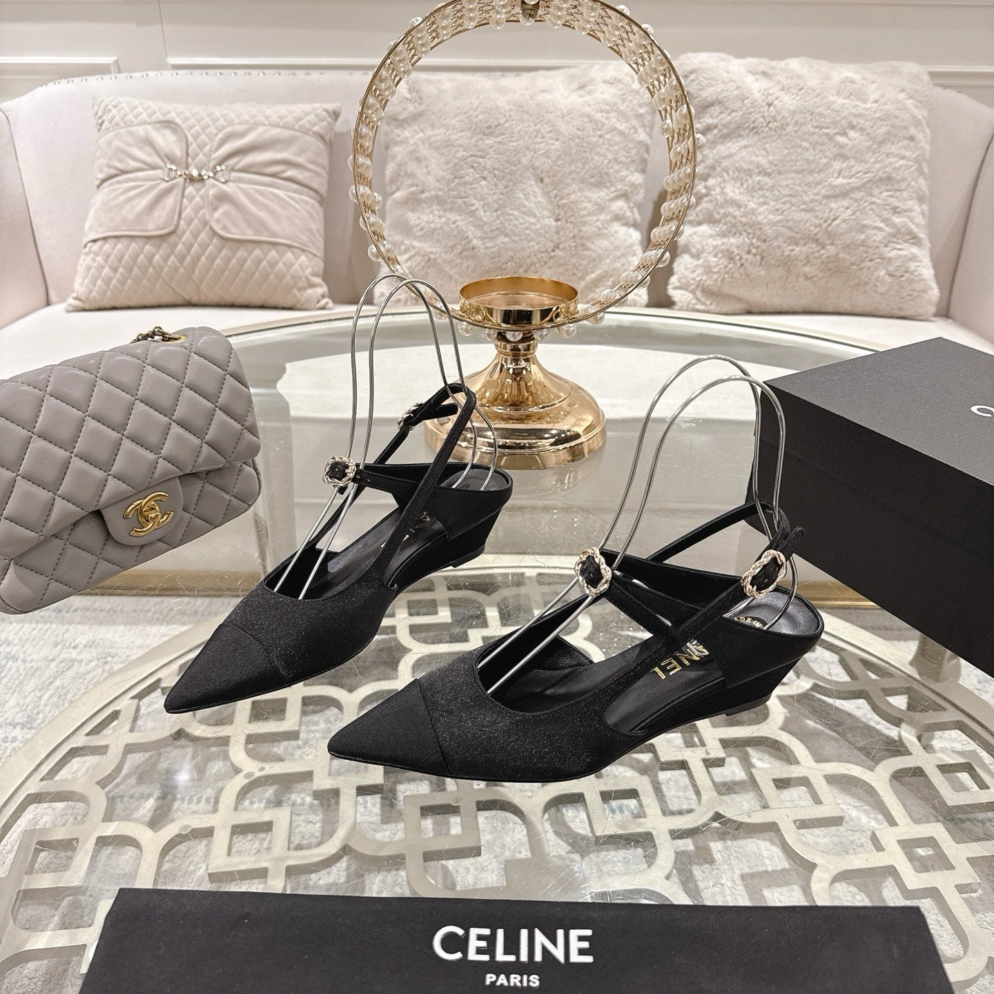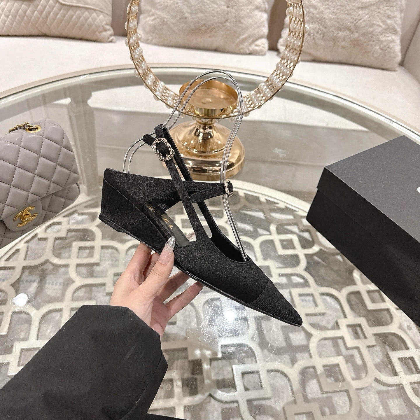 CC 25 Slingback heel Black Silk and Sheepskin 268921