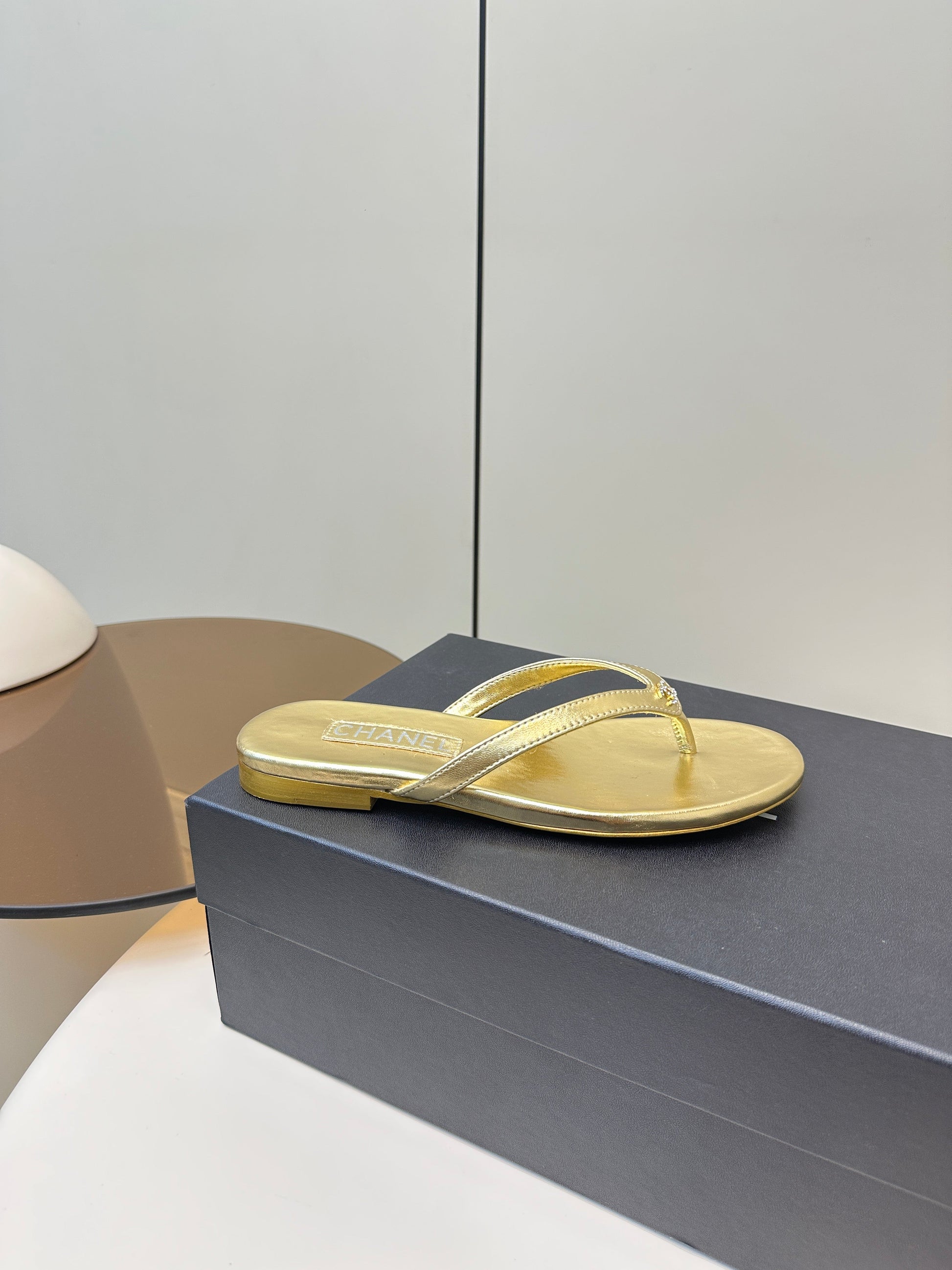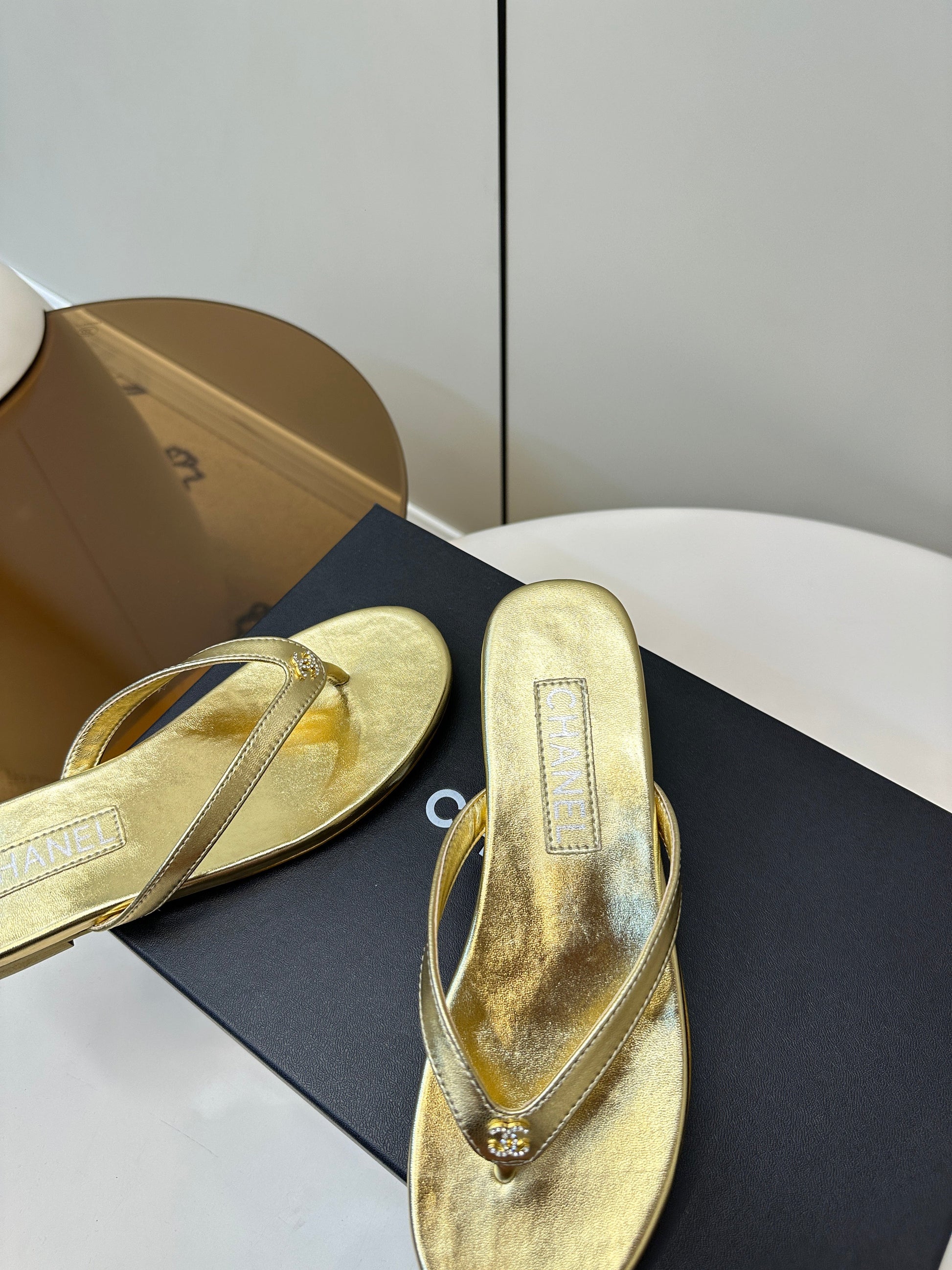 CC 25 Thong Sandal Gold Metalic Silver Diamond Logo
