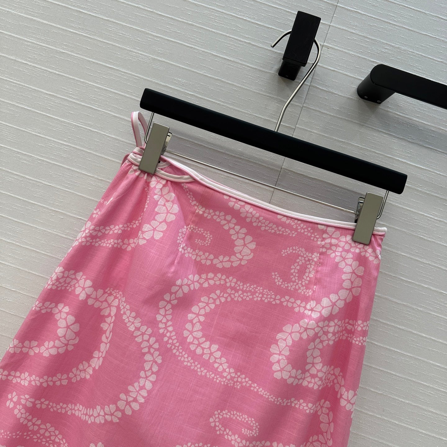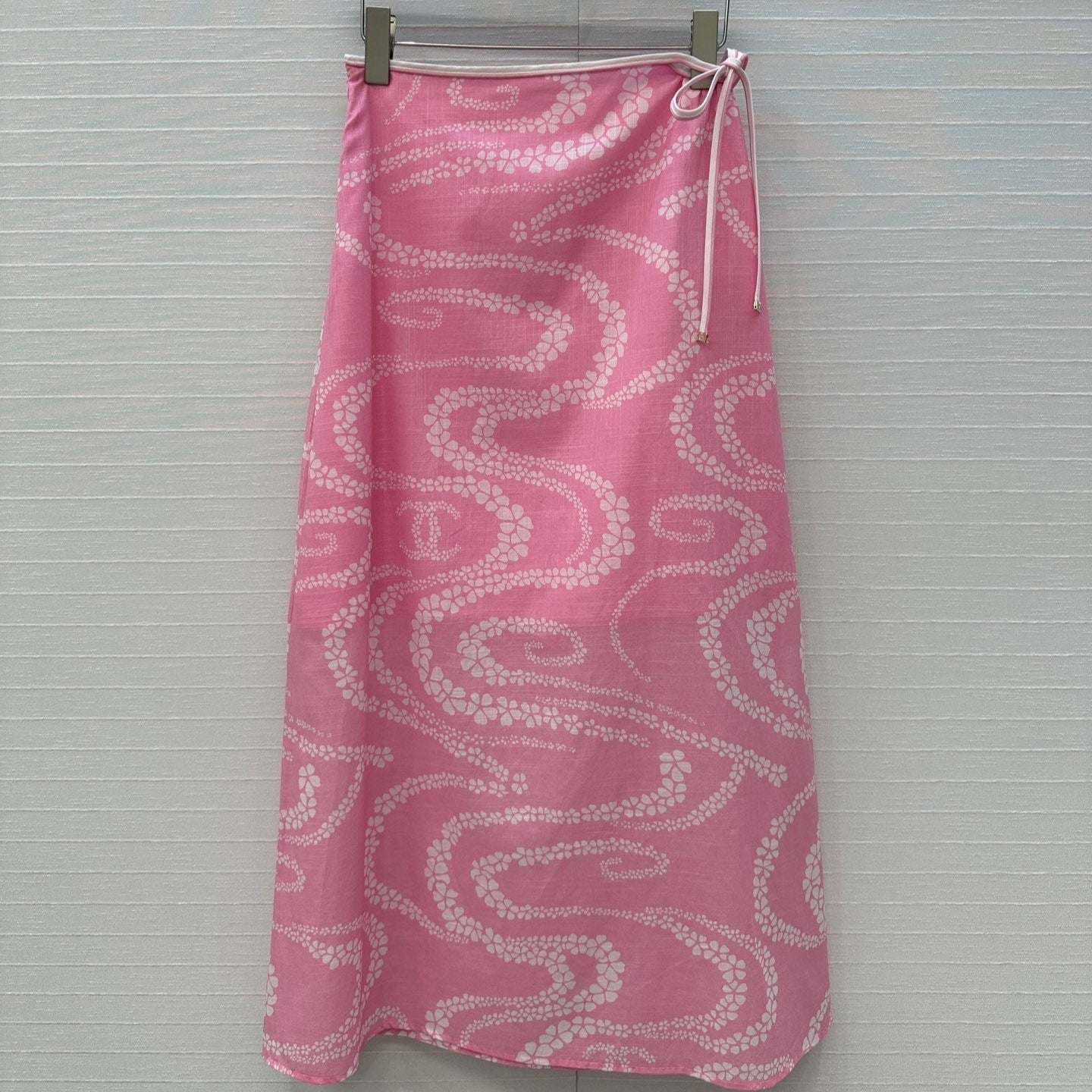 CC 25 Wave Pattern Long Skirt Pink Silk Cotton