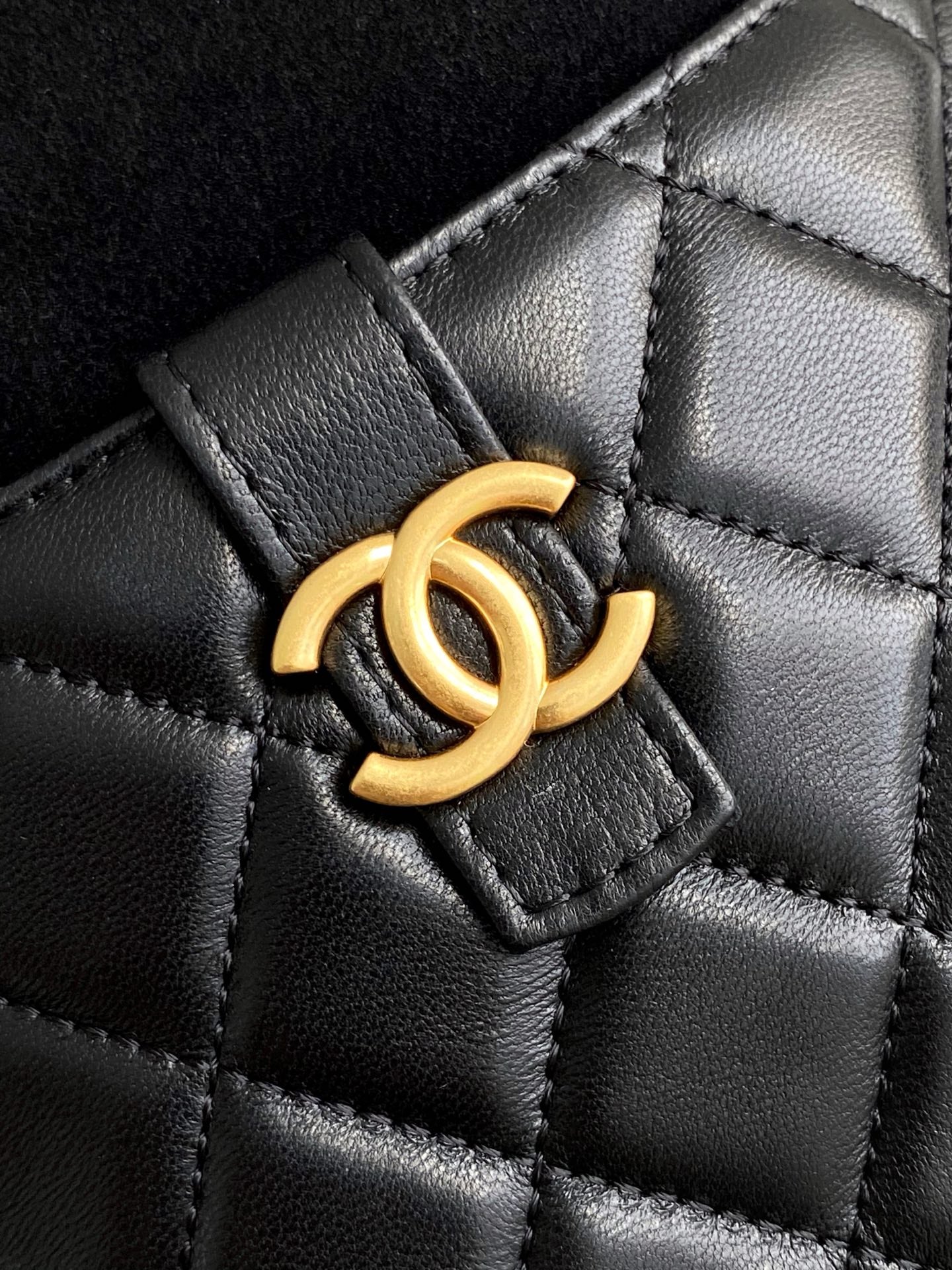 CC 25A Clutch With Chain 18cm Black Suede Calfskin