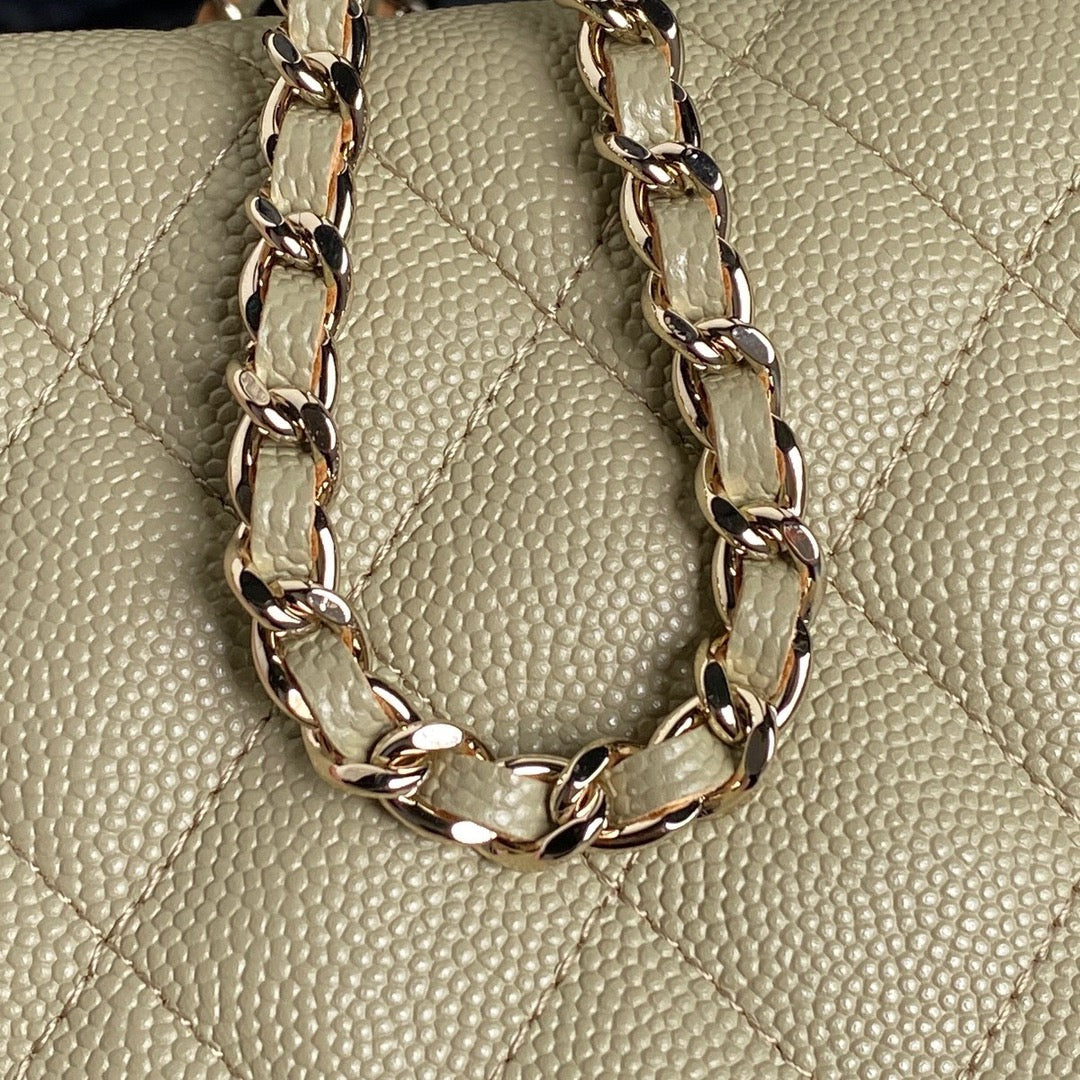 CC 25C Hobo Bag 21.5cm Top Handle Beige Grained Calfskin
