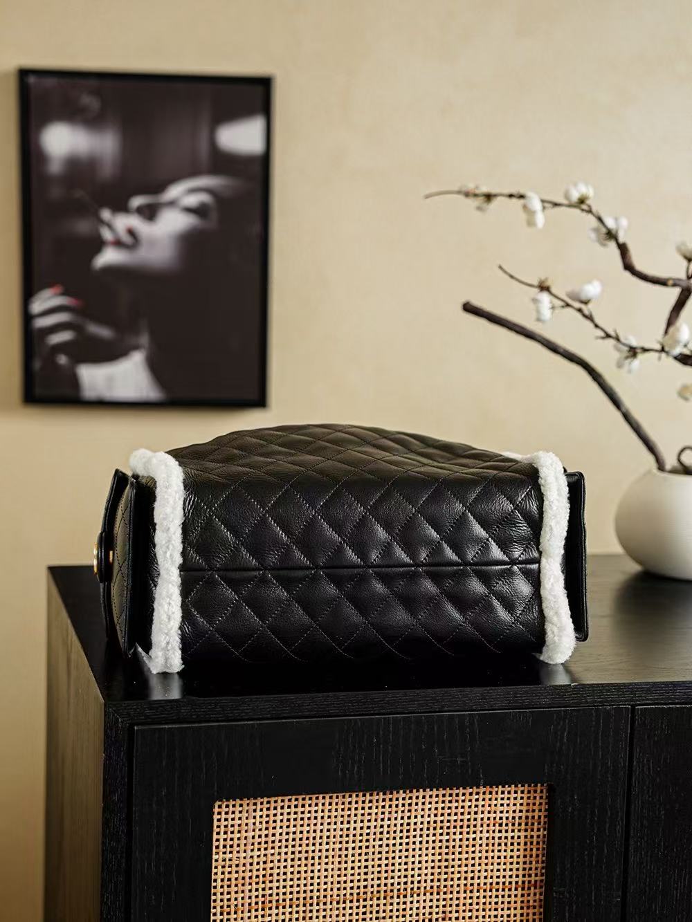CC 25C Hobo Bag 40cm Black White Lambskin Gold Hardware
