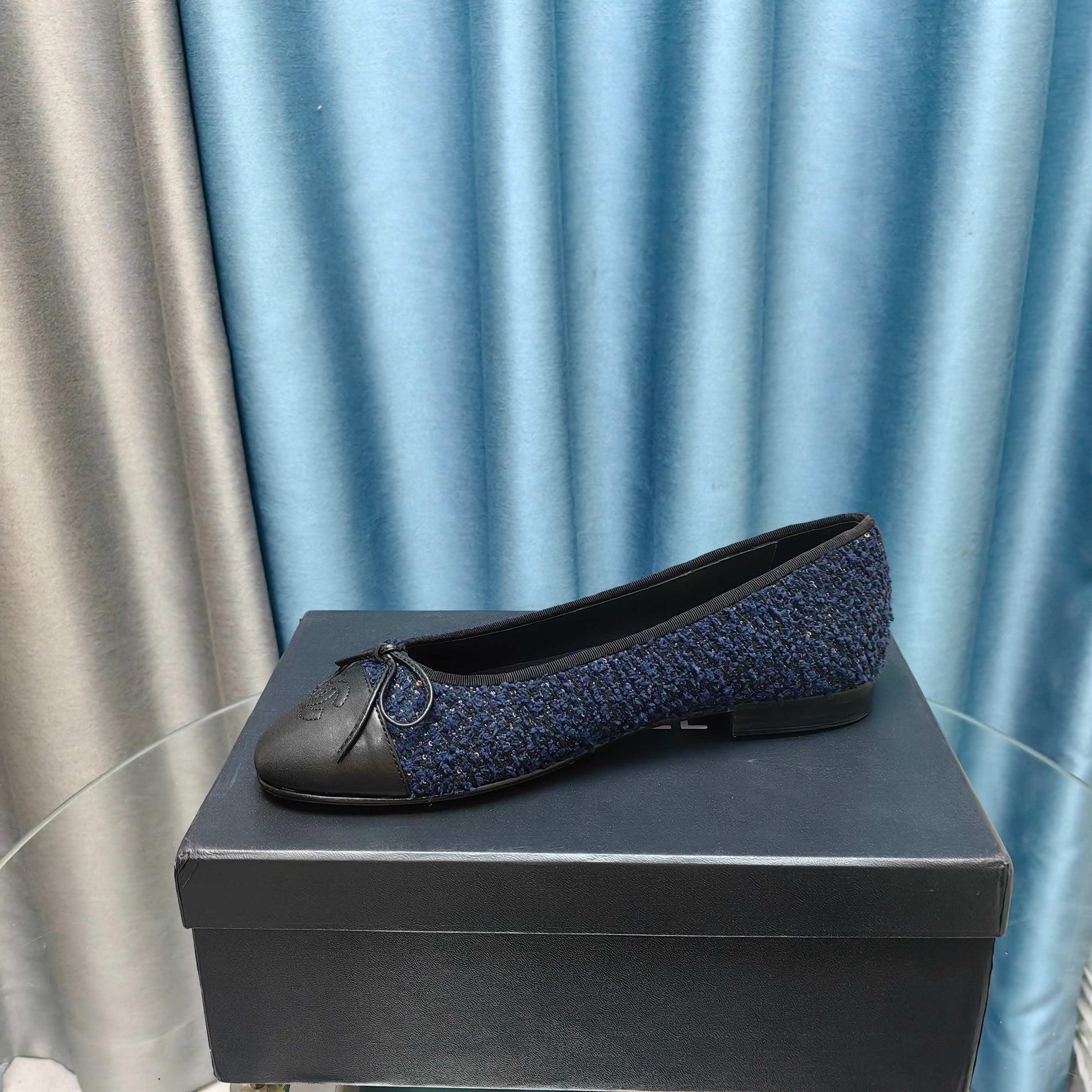 CC 25P Ballet Flat Dark Blue Tweed Black Calfskin