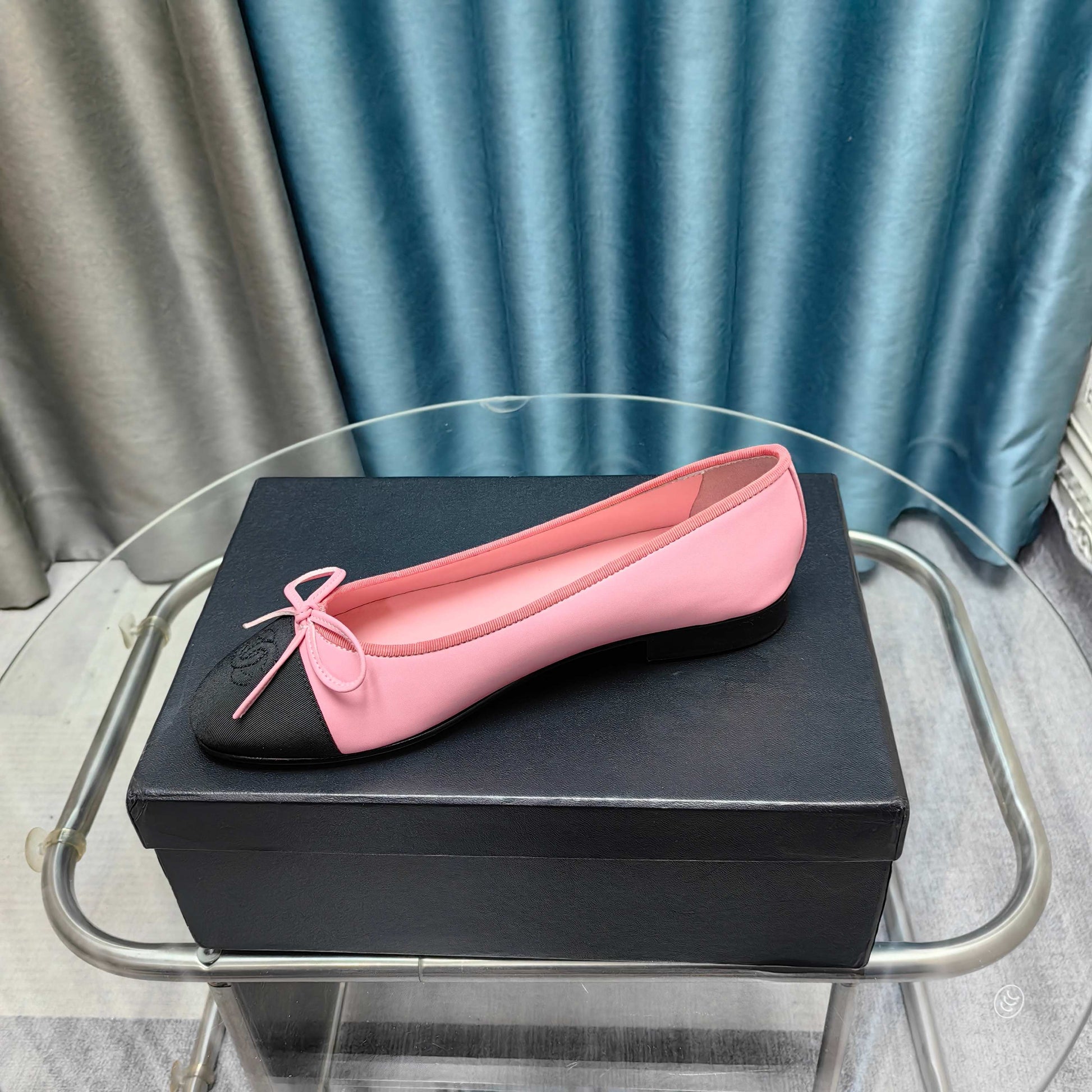 CC 25P Ballet Flat Pink Calfskin Black Grosgrain