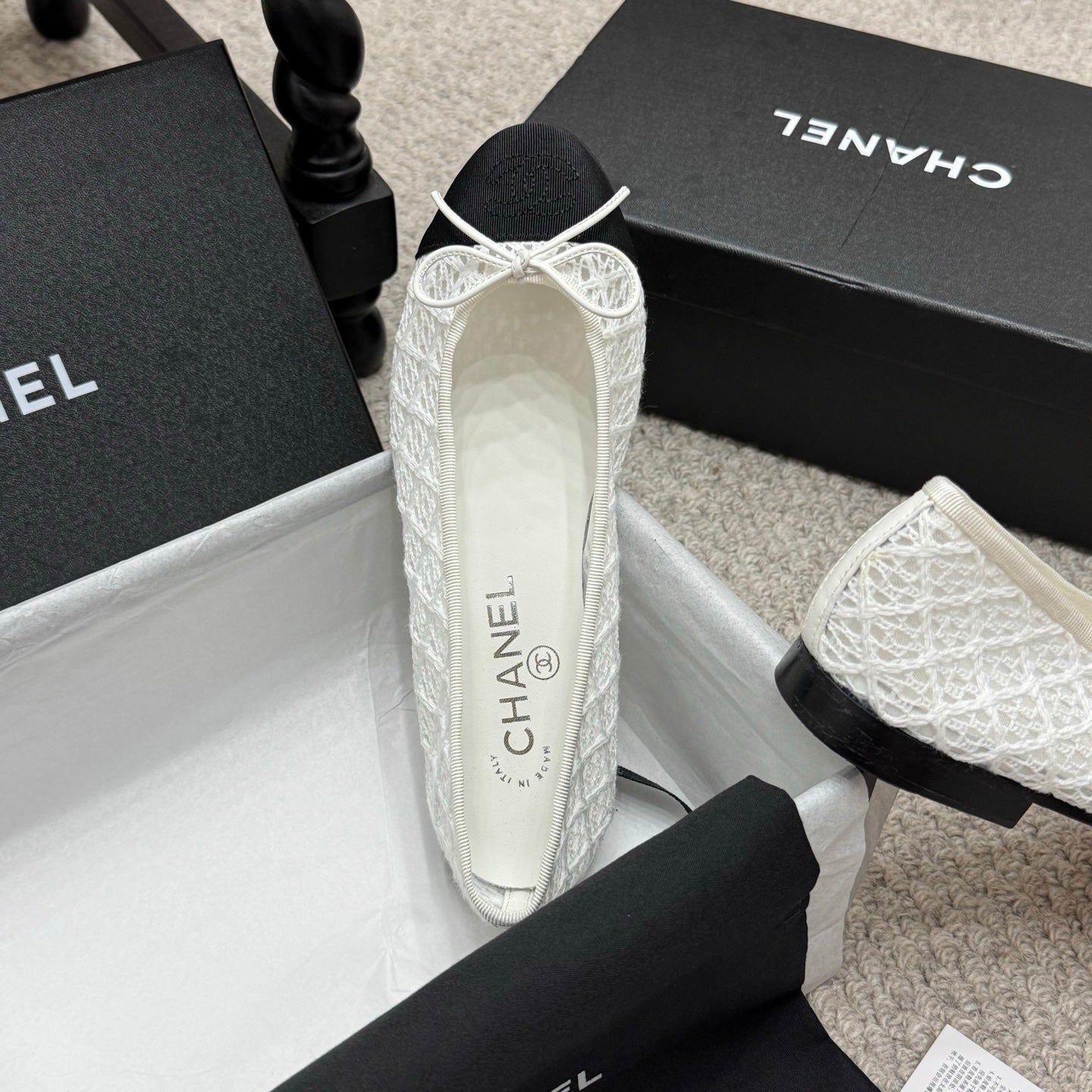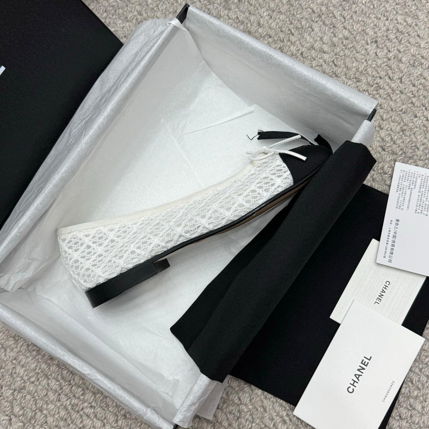 CC 25p Ballet Flat White Cotton Mesh Fabric Grosgrain