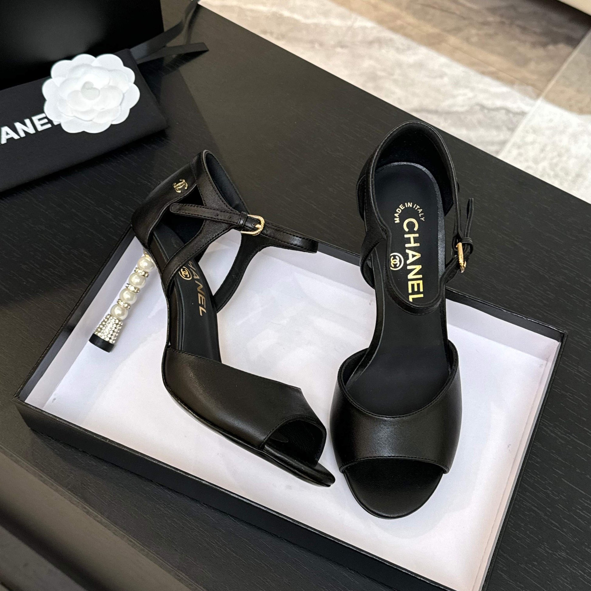 CC 25S Sandal Heel 85mm Black Calfskin