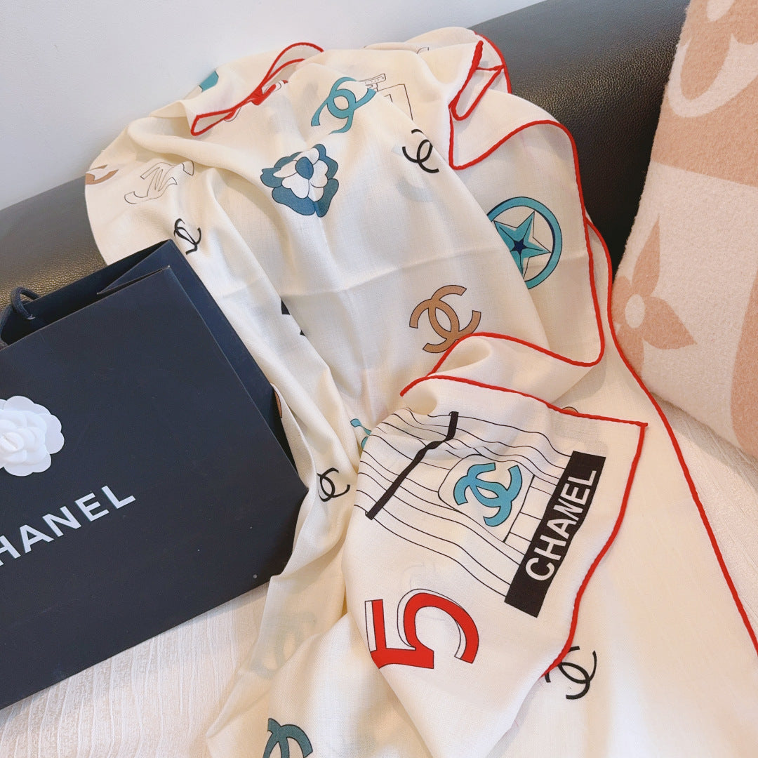 CC 25s Scarf 140cm White Multicolor Cashmere 973461