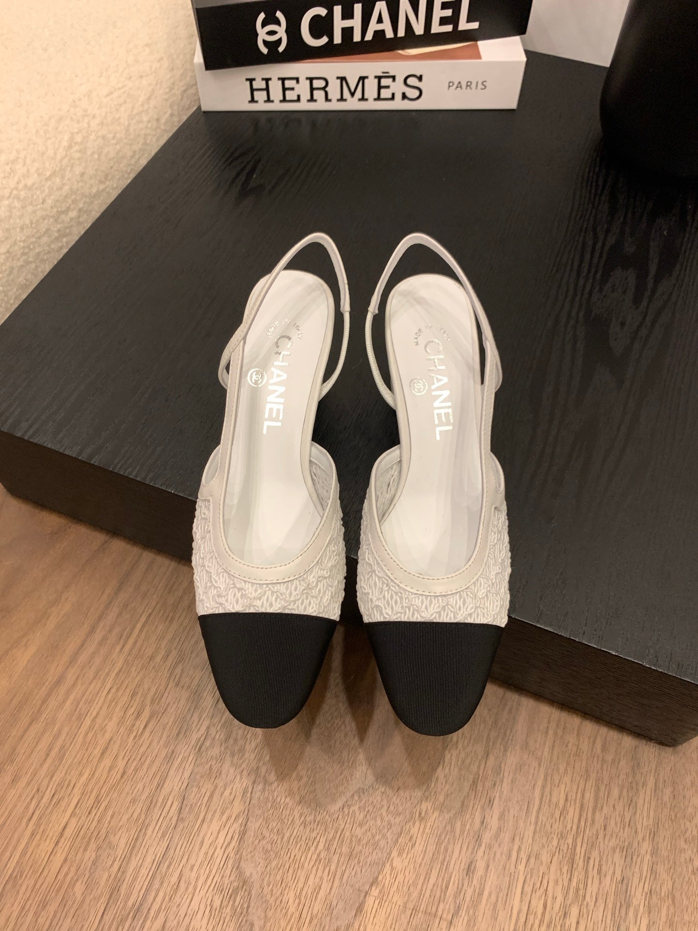 CC 25 Slingback 50mm White Fabric Grosgrain