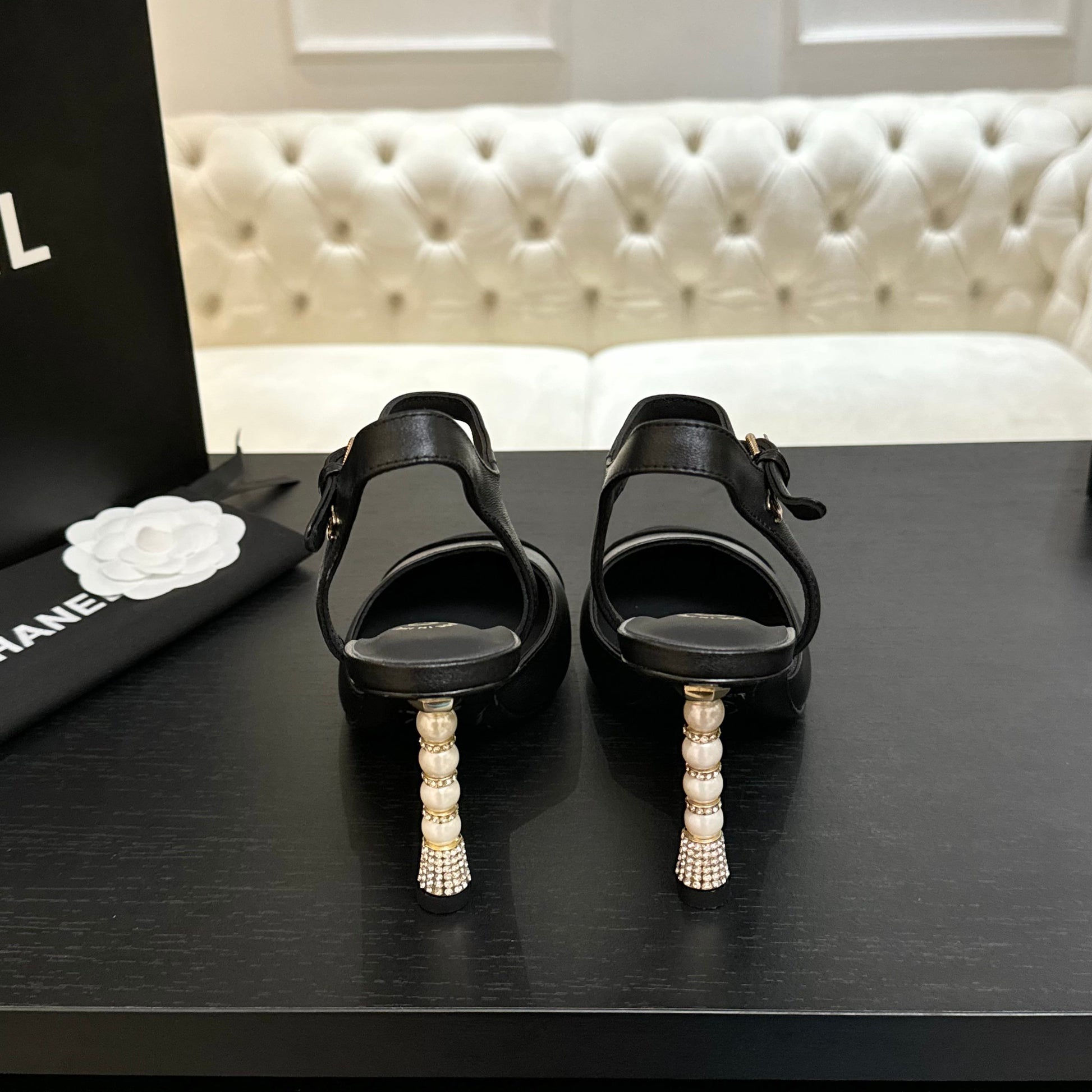 CC 25S Slingback 85mm Black Calfskin Purple Suede