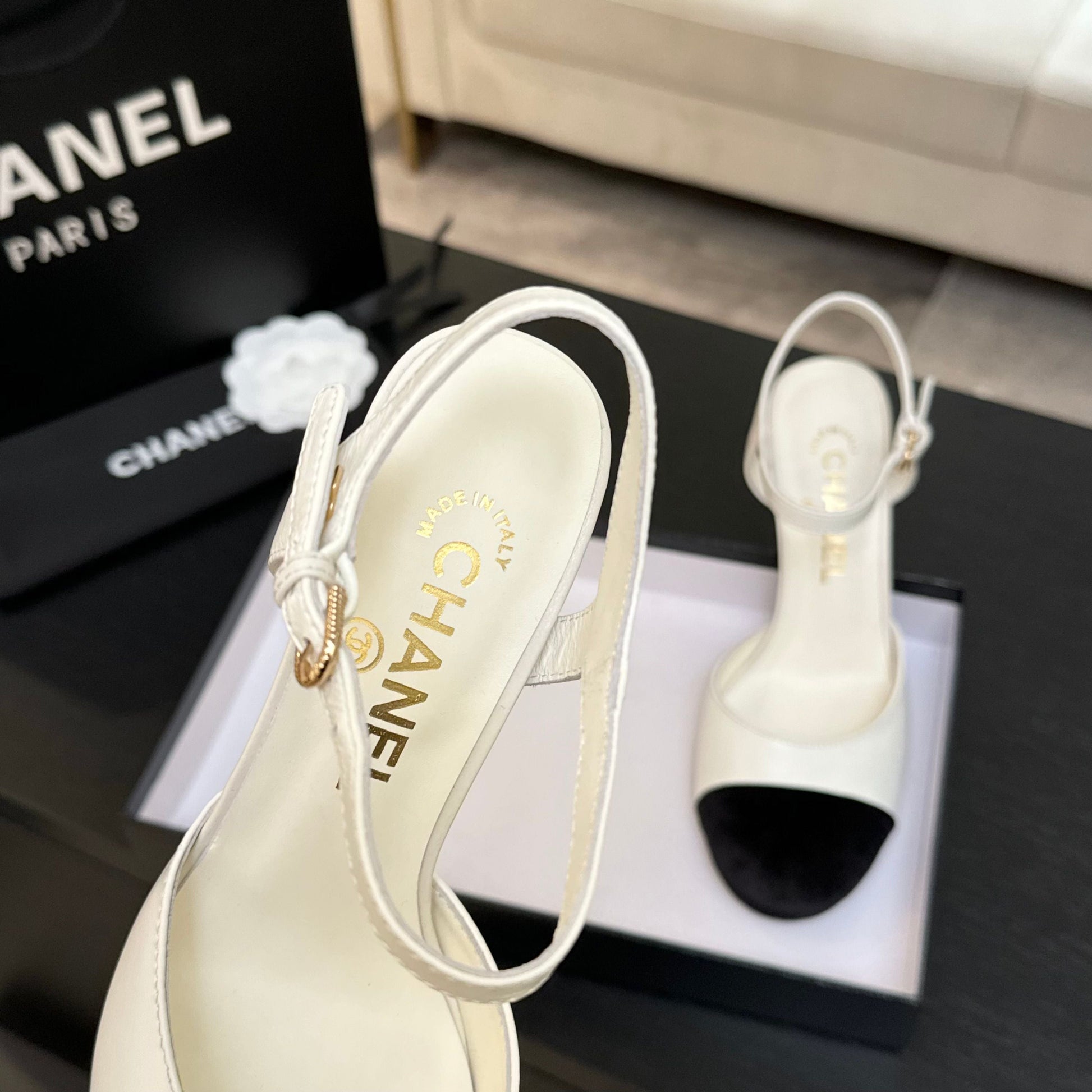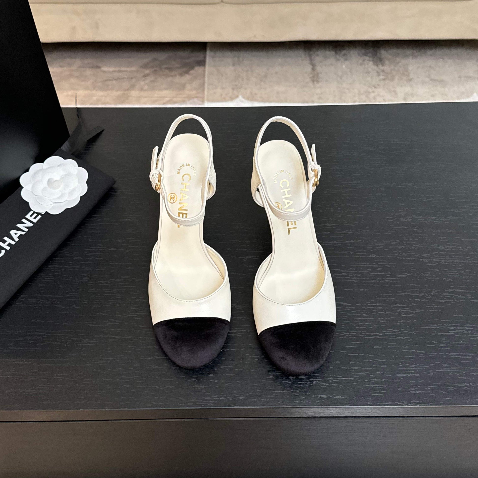 CC 25S Slingback 85mm White Calfskin Black Suede