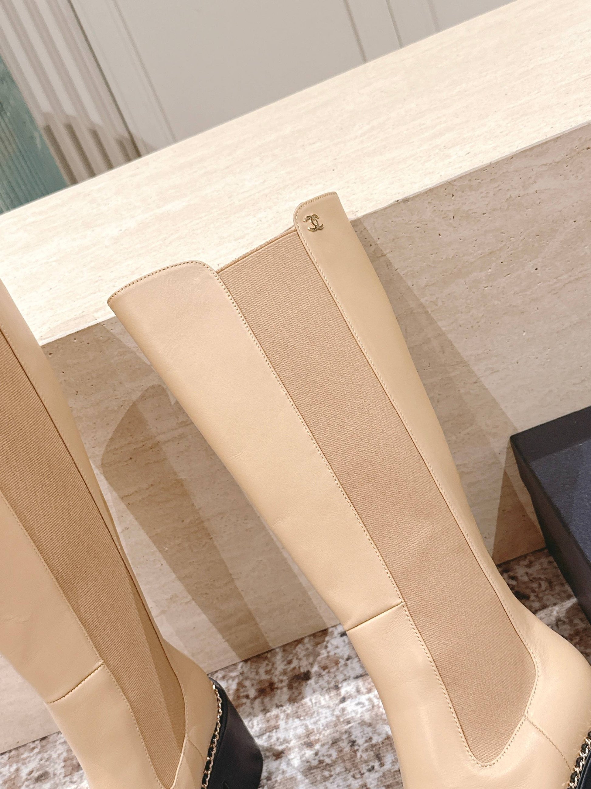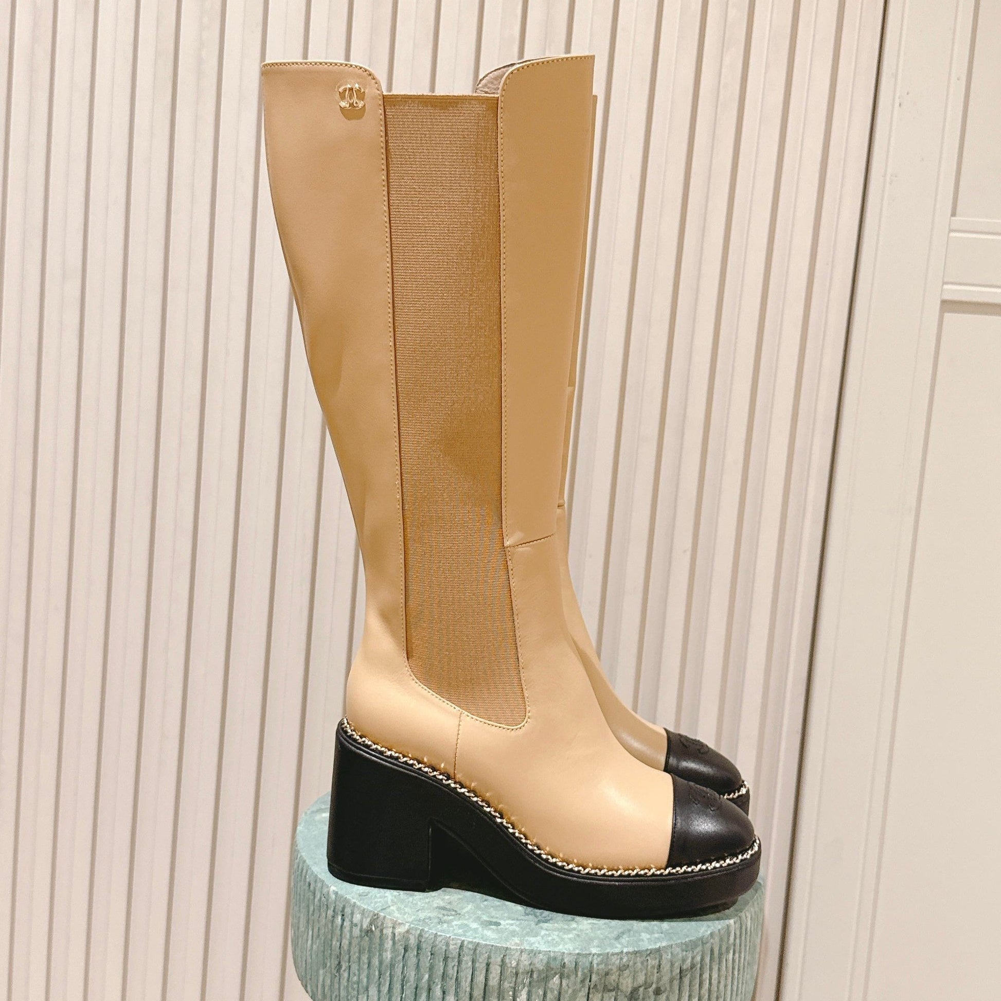 CC 25SS High Boot Beige Black Calfskin 431720