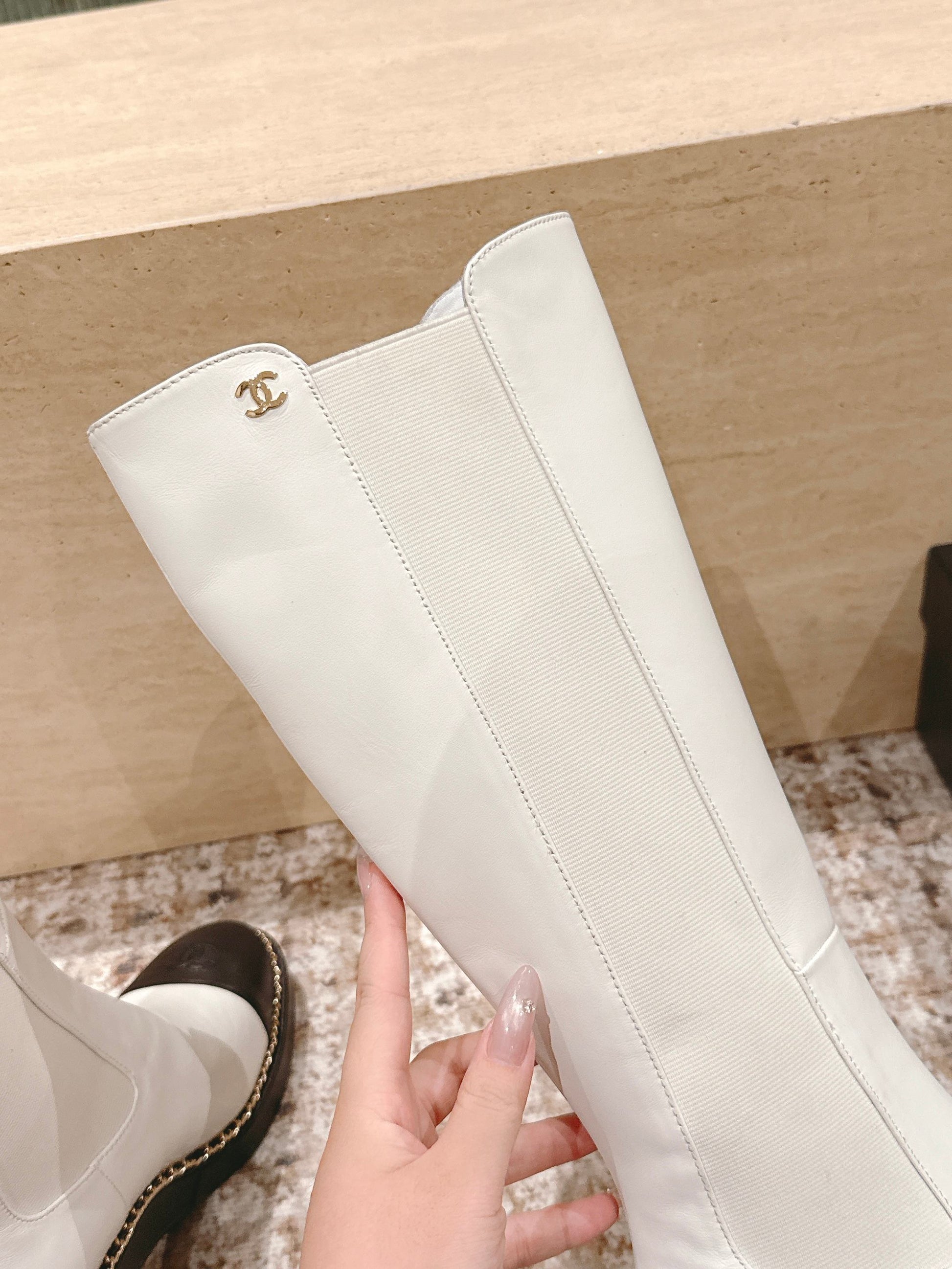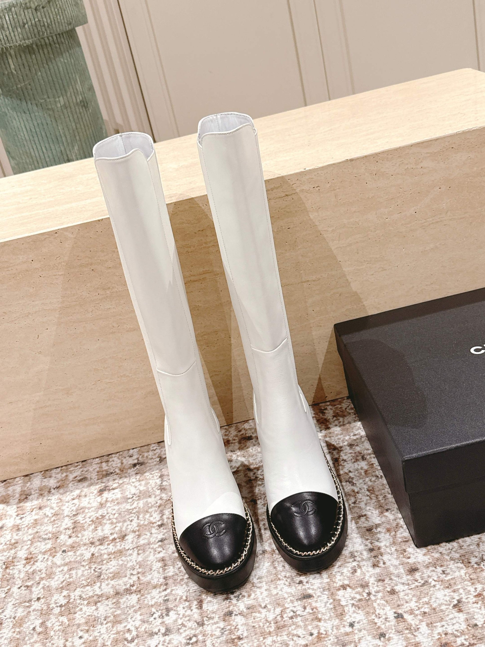 CC 25SS High Boot White Black Calfskin 431721