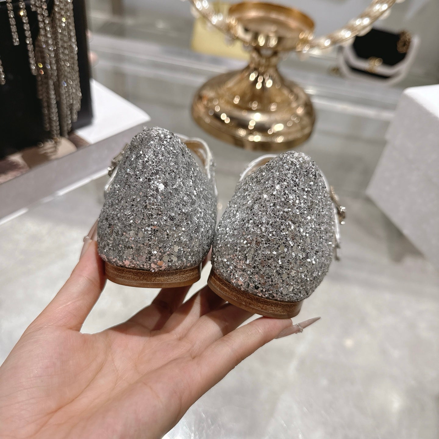 CD 26 Ballet Flats Gray Leather With Sequins 592216