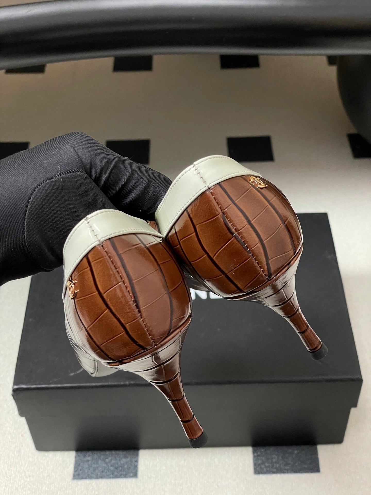 CC 26 Crocodile-embossed Pump Brown mix White Calfskin 593369