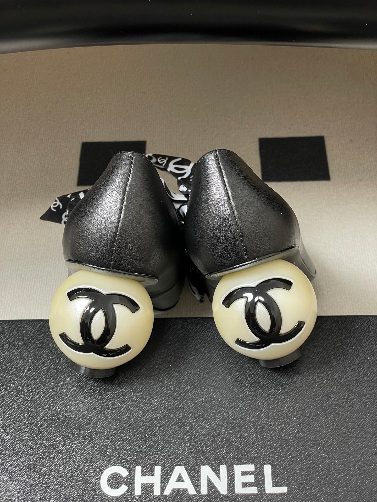 CC 26 Double C Pearl Heel Pump With Silk Ribbon Black Sheepskin 593158