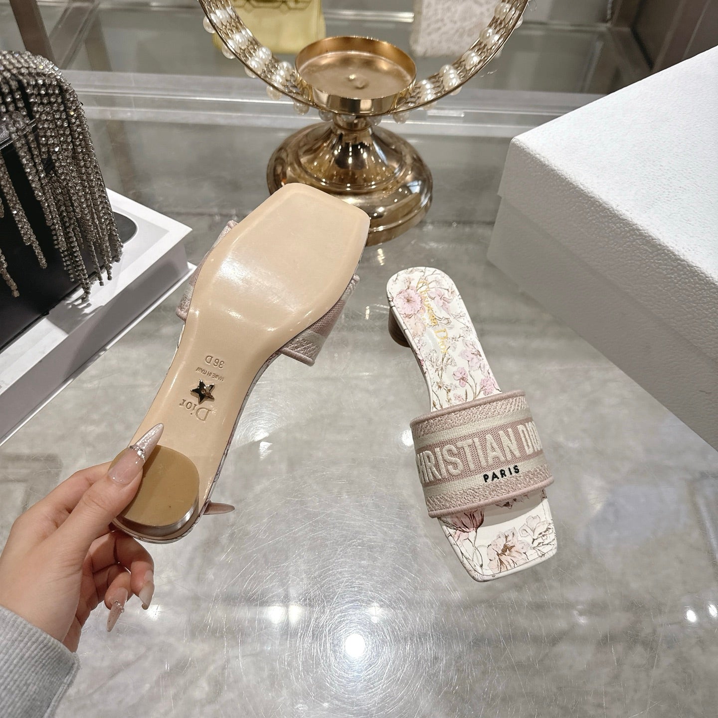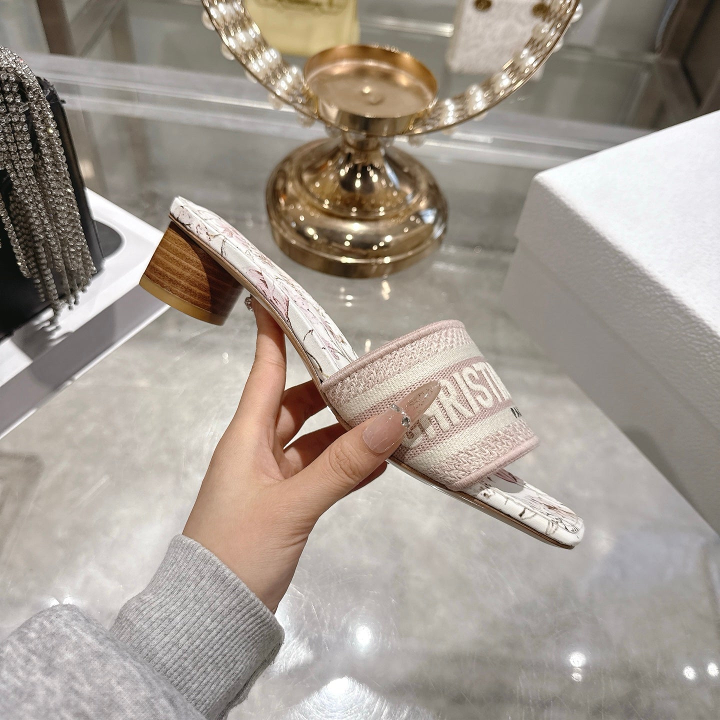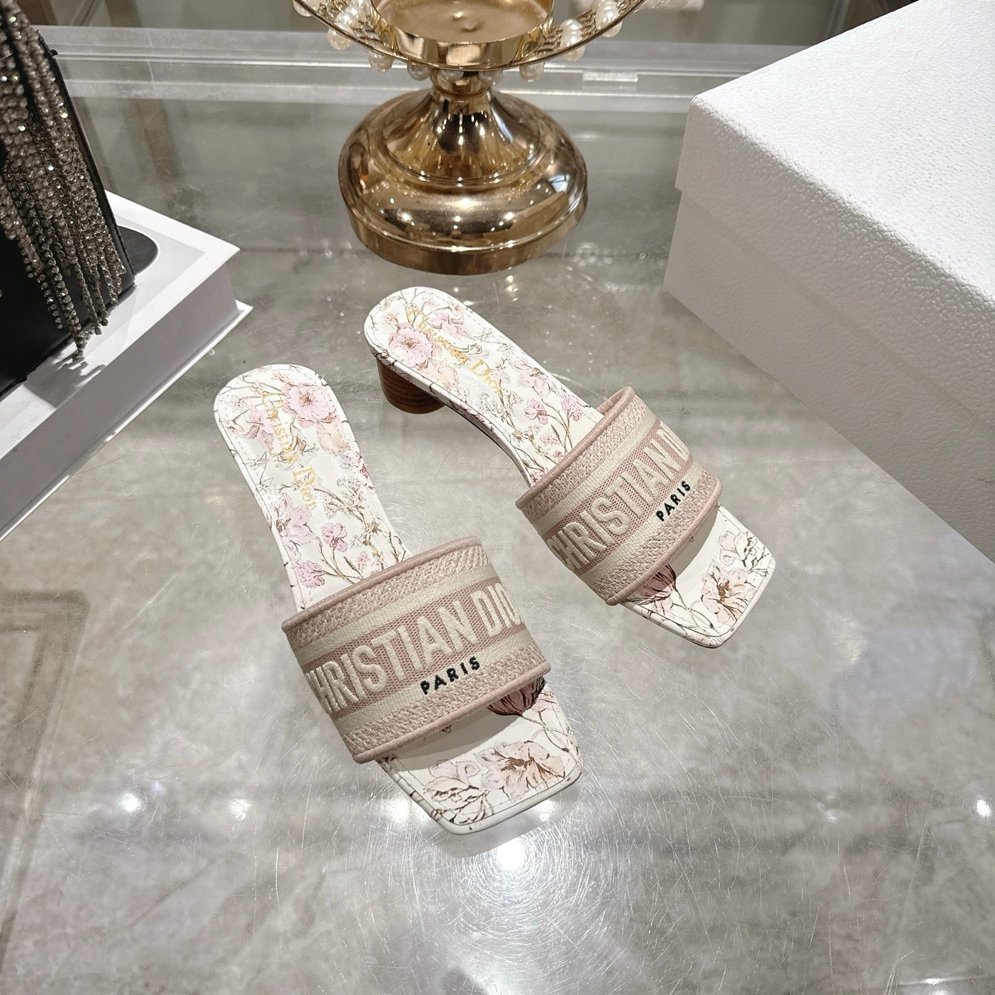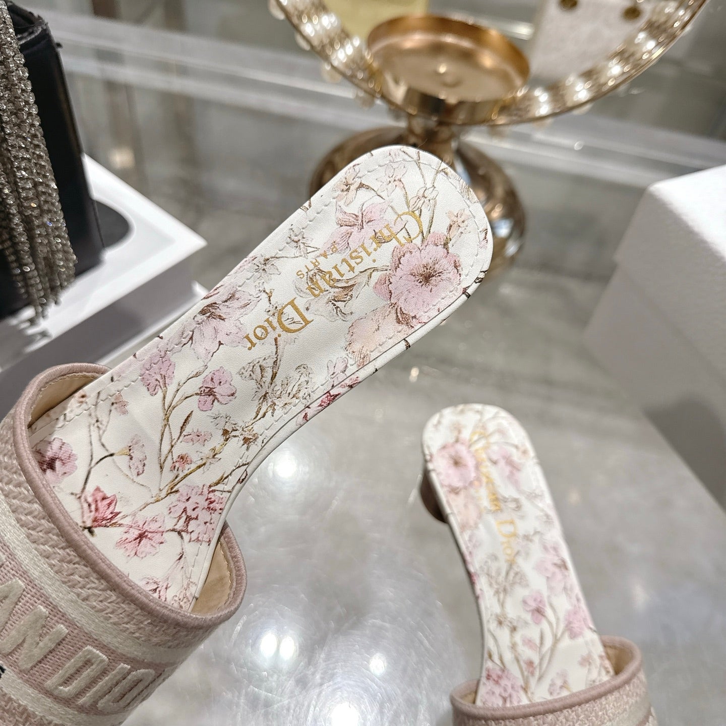 CC 26 Embroidered Sandals 45mm Beige Flower Canvas 592242