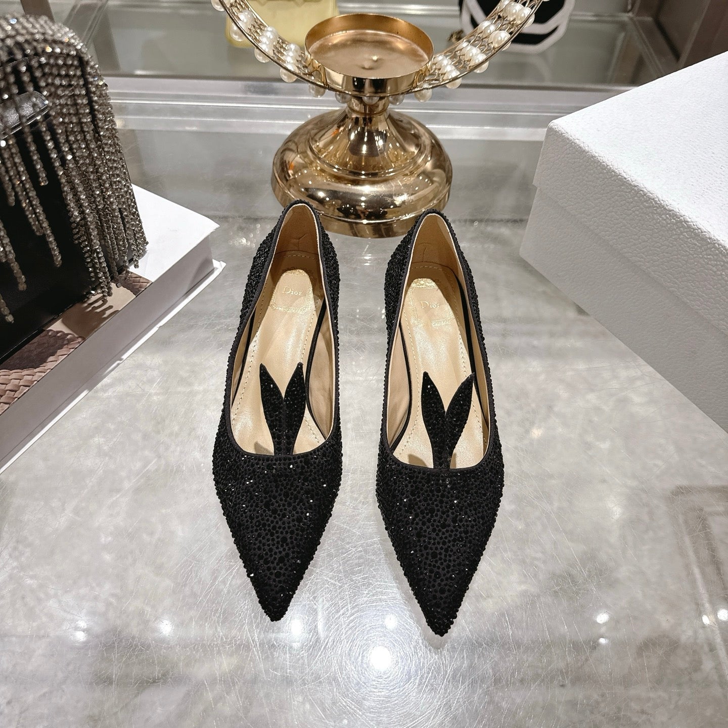 CD 26 Pump 35mm Black Full Diamond Sheepskin 592202