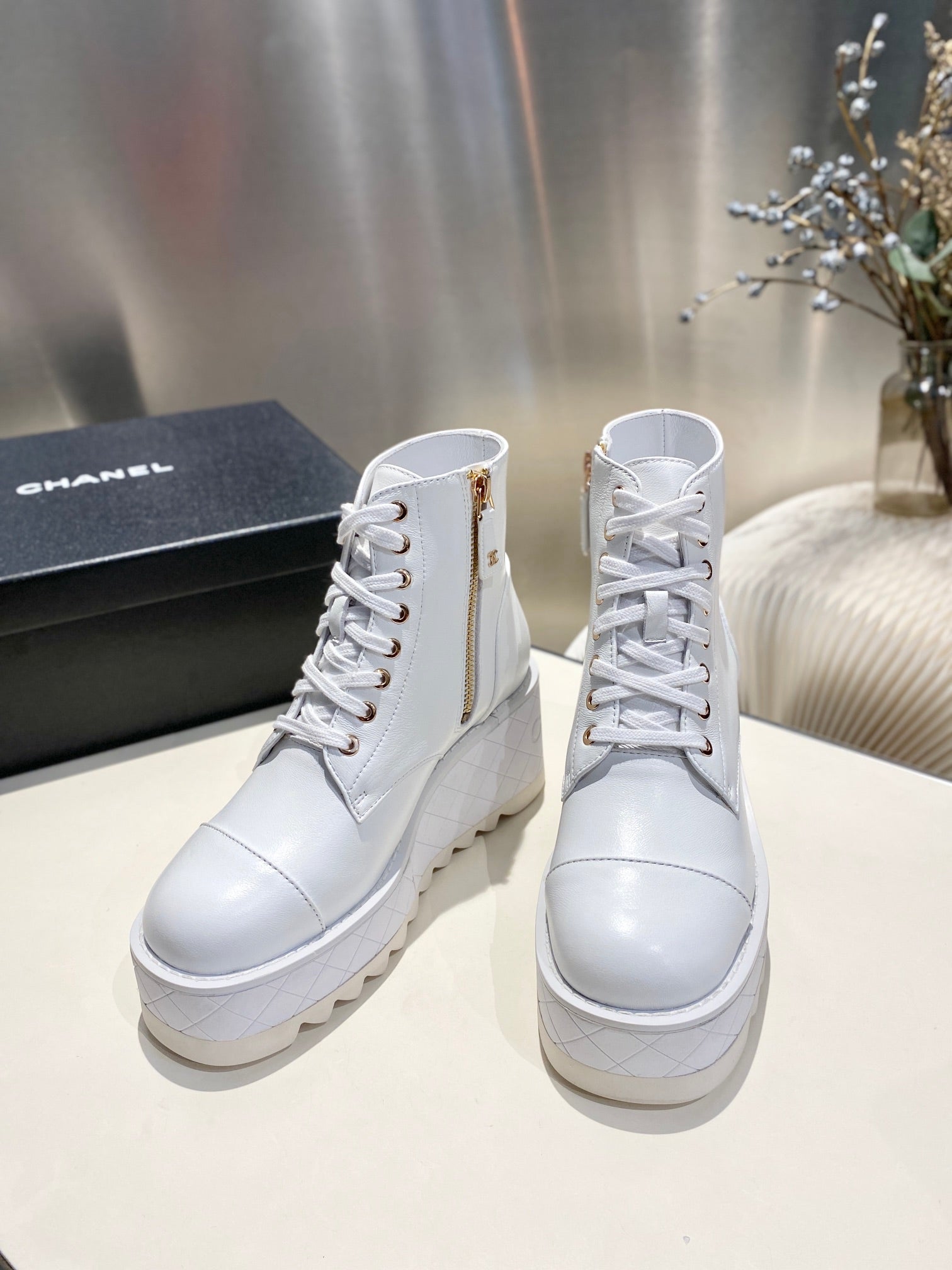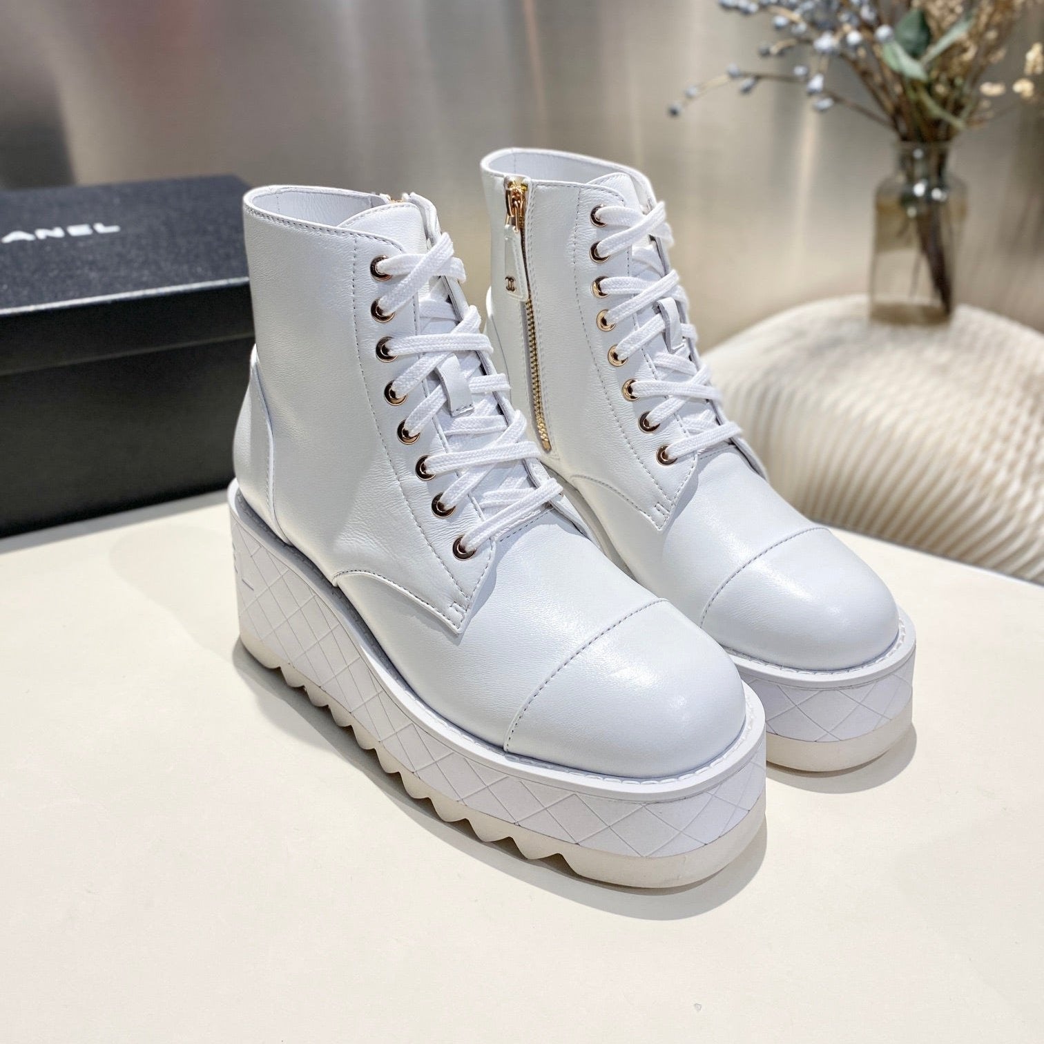 CC Ankle Boots 100m White Lambskin