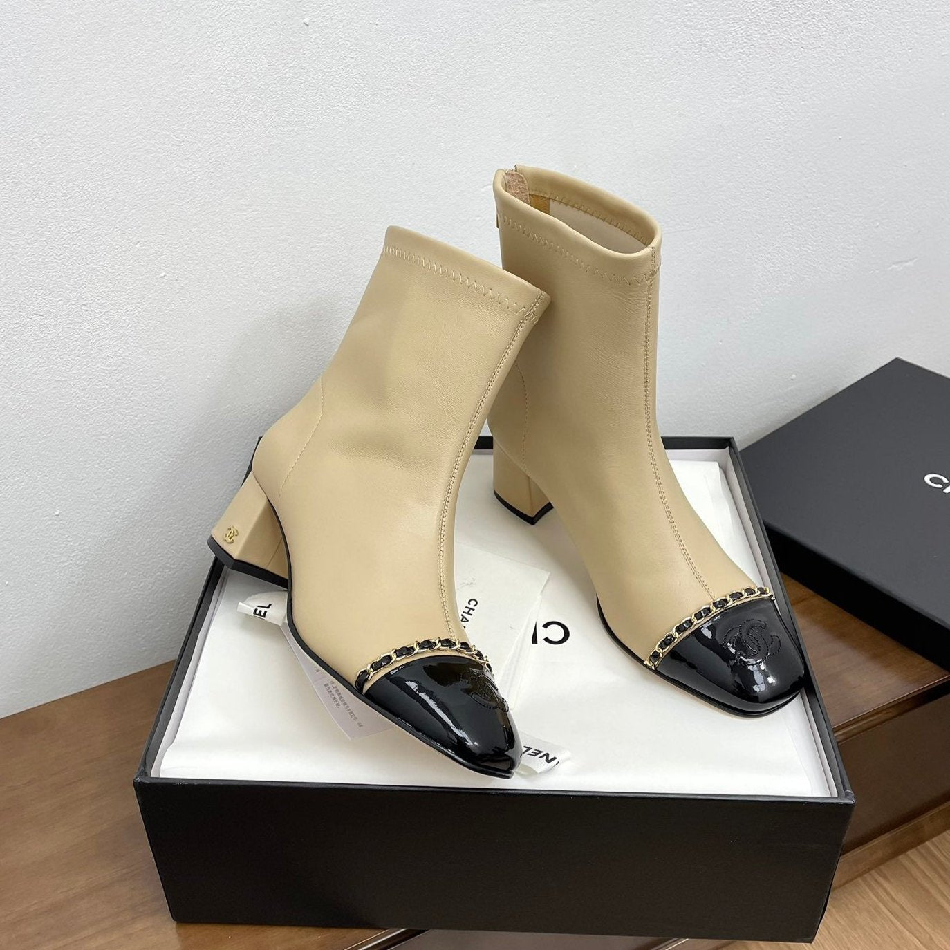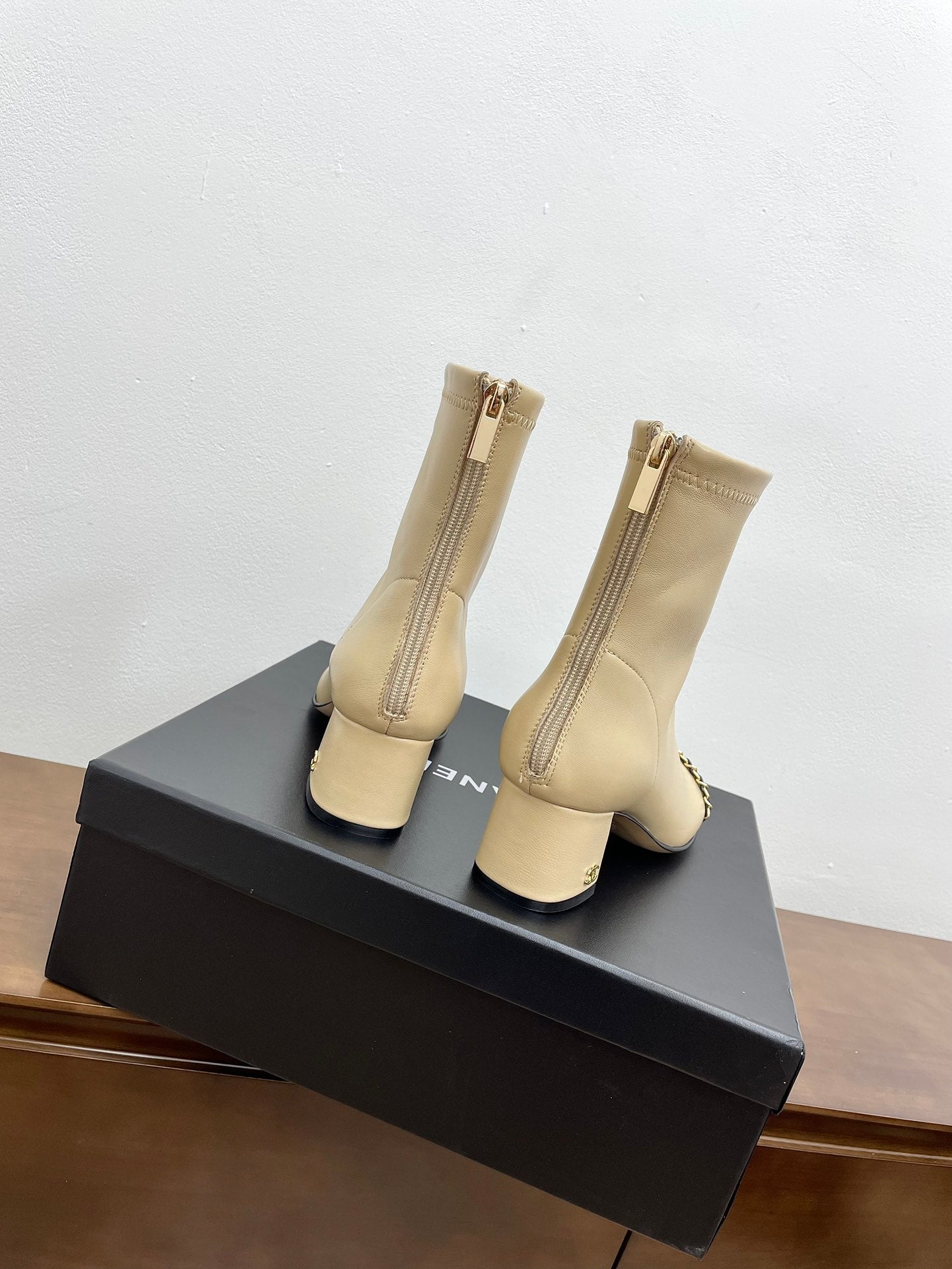 CC Ankle Boots 50mm Beige Chain Lambskin