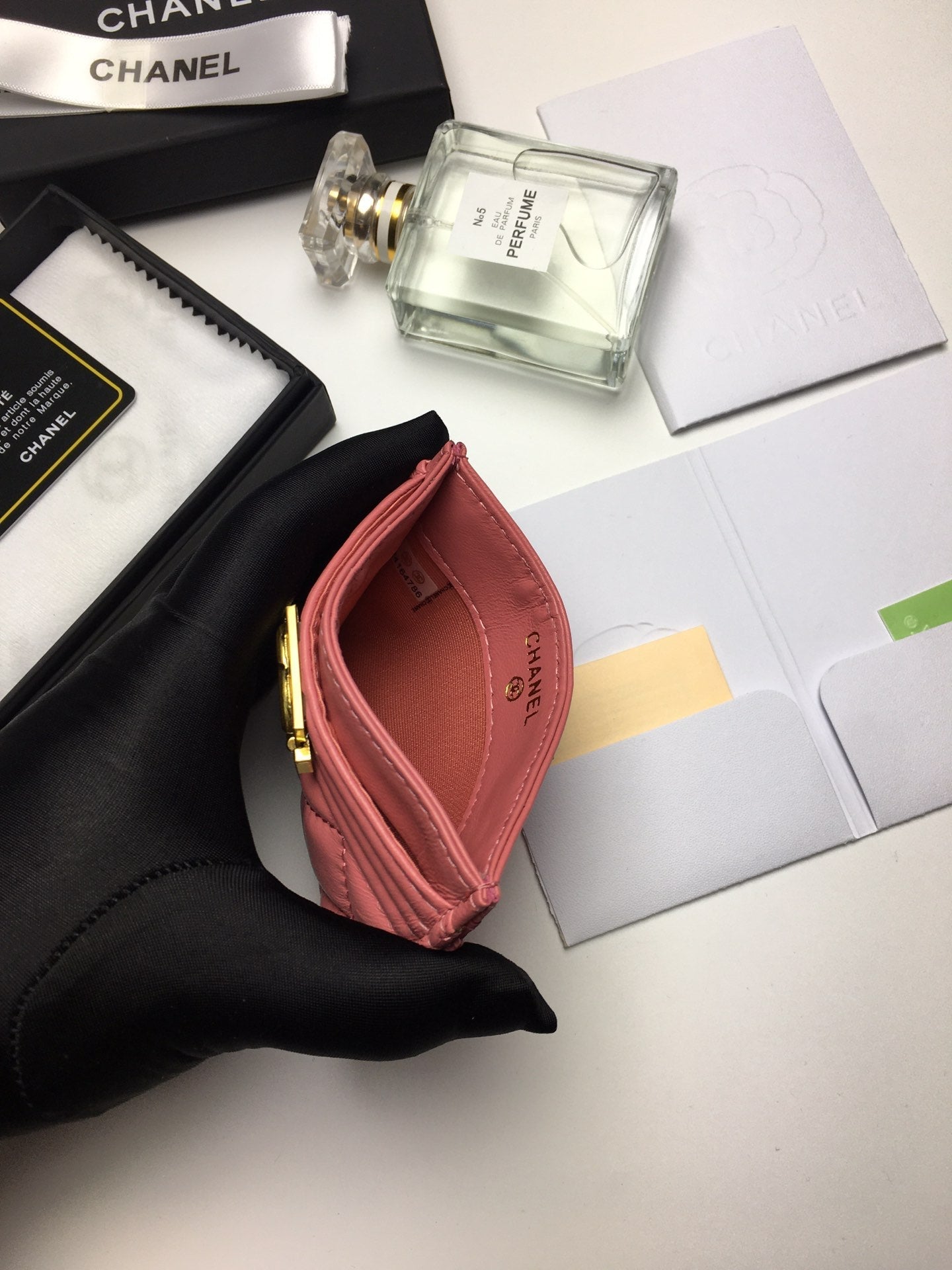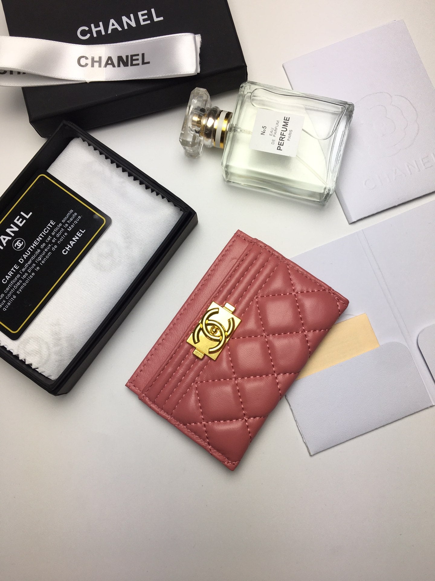 CC BOY CARD HOLDER 11.2 CORAL CALFSKIN GOLD ICON
