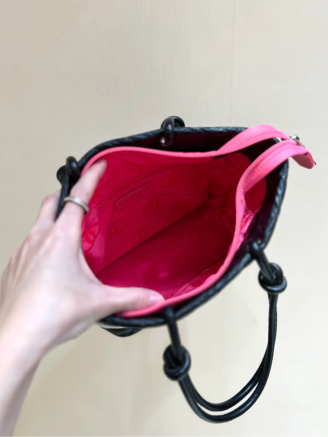 CC Cambon Tote 24cm Black White Quilted Calfsin